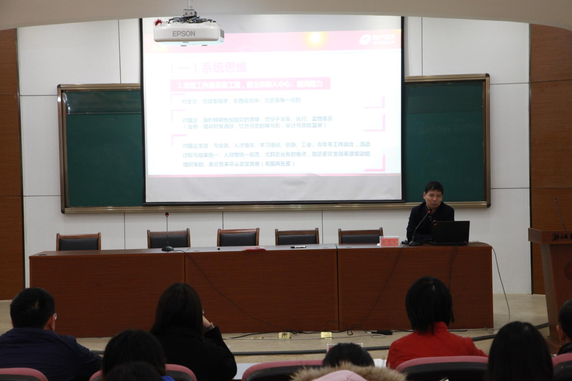 仪式结束后,高书记以“党支部工作创新的几点思考”为题,给在座师生党员上了一堂生动的党课。他结合公司的党建实际情况,围绕党支部工作创新面临的难题、实践和思考三个方面,从系统思维、规范思维、特色思维角度,运用大量企业鲜活的支部党建工作案例,为大家讲述了如何做好党支部创新工作。高书记的党课内涵丰富、生动形象,充满正能量,赢得台下师生党员阵阵热烈掌声。