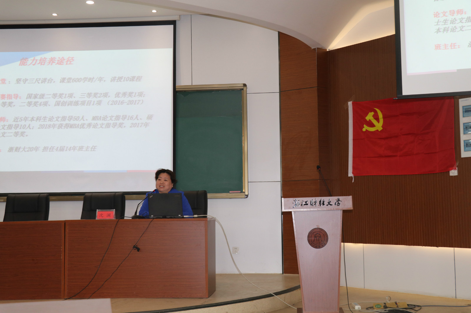 在党旗下,沈渊教授以“立德树人”为主题,从“人格塑造”、“能力培养”、“良师益友”三个方面详细分享了她从教三十六年来在教书育人过程中的经验。她指出,作为教师不仅要在学业上对学生严格要求,培养学生的敬业精神和坚韧毅力,还要在生活上对学生关怀备至,成为学生的良师益友。