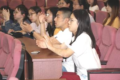 入党宣誓大会在庄严的《国际歌》中拉开了序幕。首先,全体师生党员共同观看宣传片《在你身边》。影片回顾了党员们为我们的美好生活所做出的事迹,展现了在中国共产党的伟大领导下党员同志们的奉献精神。预备党员看完后纷纷表示要像优秀的党员同志看齐。