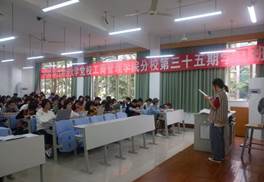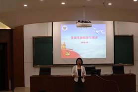 党委副书记、纪委书记谢敏详细讲述了党员的发展程序和要求,着重强调了党员发展的原则性和严肃性,希望青年人在严格的入党流程中不断坚定自我的初心;校纪委办公室副主任、监察处副处长罗金艳以“谈廉说纪”为主题,通过真实的案例,批判了某些腐败党员的违法乱纪行为,并强调要引以为戒、不忘初心,不断提升思想道德意识,切莫以身试法;校党委组织部、统战部副部长段雪辉老师以“红色主题--中国共产党建党的那些人和事”,回溯了中国共产党的建党历史,并敬告广大青年要坚定理想信念,牢记共产党人的初心和使命;最后,法六合彩预测