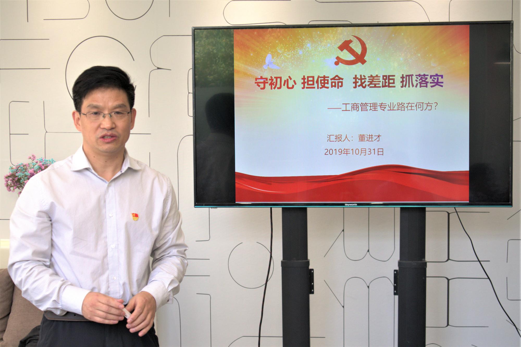 “人才建设和人才培养”中心工作,深入探讨了工商管理专业“路在何方”的问题。他指出,教师党员要铭记“立德树人”这一初心,遵循“全面提高人才培养能力”这一主旨,按照“守初心、担使命、找差距、抓落实”四个总要求,做到回归常识、回归本分、回归初心、回归梦想的“四个回归”,引领并帮助学生学习知识、锤炼品格、创新思维、奉献祖国。