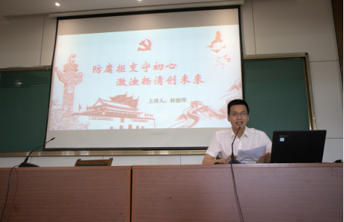 接着,林骁邦副书记以“防腐拒变守初心,激浊扬清创未来”为题,为全体毕业生党员们上了一讲廉洁从业教育课。林骁邦指出廉洁即是清清白白的行为和光明磊落的态度,同学们走向社会后,应当避免“十大不正确”的心理态度,在权力面前要负起责任有所担当,抵制诱惑,坚守法律道德的底线绝不动摇。