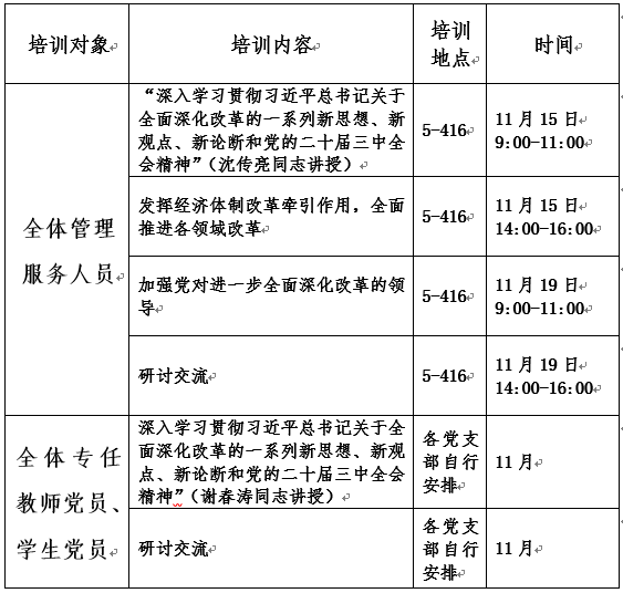 各党支部要把本次培训作为加强党员干部基本培训、推进党的二十届三中全会精神学习宣传贯彻的重大任务和重要举措,明确职责任务,做到应训尽训 ,并在12月12日前完成培训工作并提交培训情况总结及活动照片。
