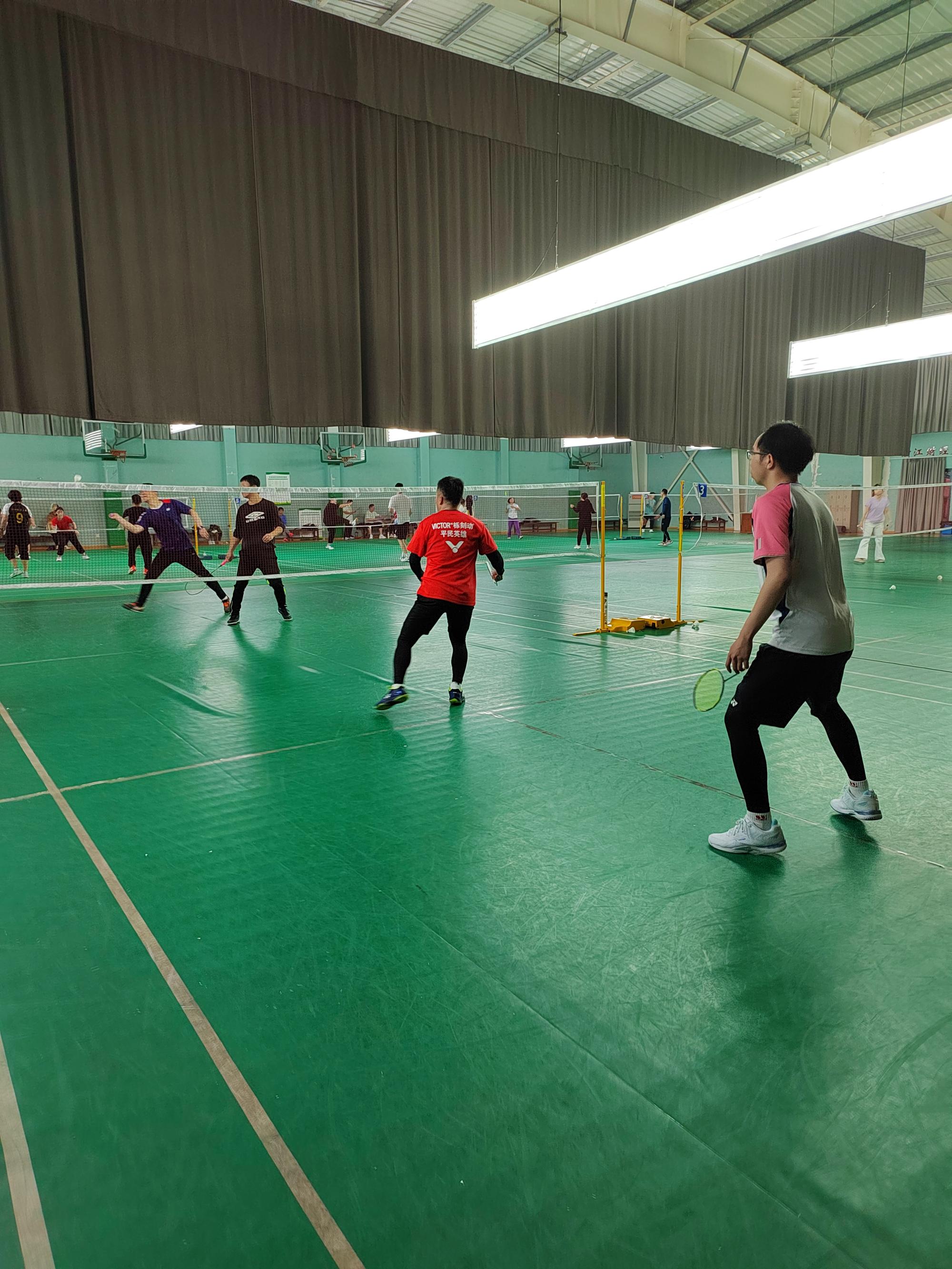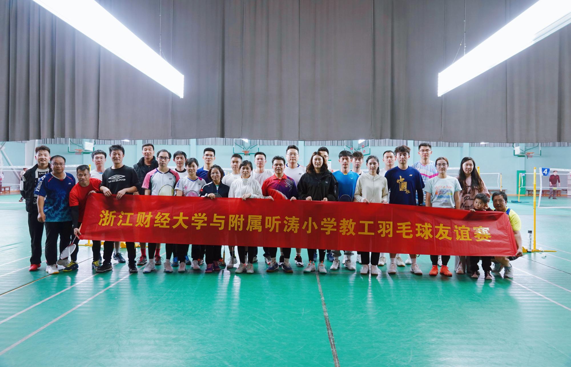 与附属听涛小学教工羽毛球友谊赛。友谊赛持续了两个半小时。