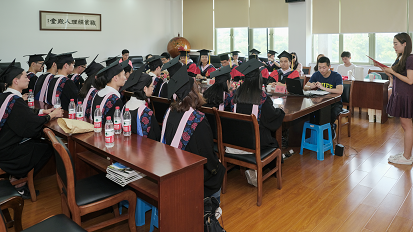 王建明副院长和郭军灵老师为同学们佩戴了黄色校友校徽。希望校友们无论走向何方,仍能够记得在浙财的青春与奋斗。浙财也永远在这里,等待校友们的归来。