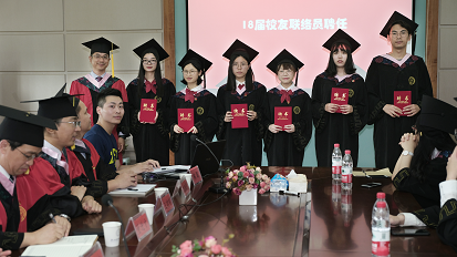 首先,是18届校友联络员聘任仪式。谢敏副书记和倪文斌副院长为校友联络员颁发了聘书。