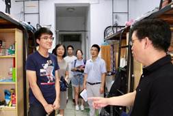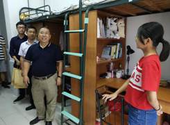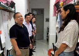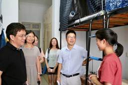 在桃李苑的走访中,面对来自新疆、湖南、湖北、山东等地的同学们,黄卫华书记亲切地与他们聊起了家常。饮食是否习惯学习上压力大不大,这些问题使同学们倍感亲切,一下子卸去了原本的拘束。黄书记指出,青春是用来奋斗的,而优秀的学习风气,是要从寝室的建设开始的。寝室内形成的勤学好问、慎思明辨的优良学风,对同学们的未来发展是非常有利的。一些女生寝室还经过了同学们自己的装饰,门贴、桌贴、书立,在提升寝室生活质量的同时塑造了浓厚的学习氛围,备受倪副院长的欣赏,倪副院长还对女生寝室的卫生情况特别提出了表扬。