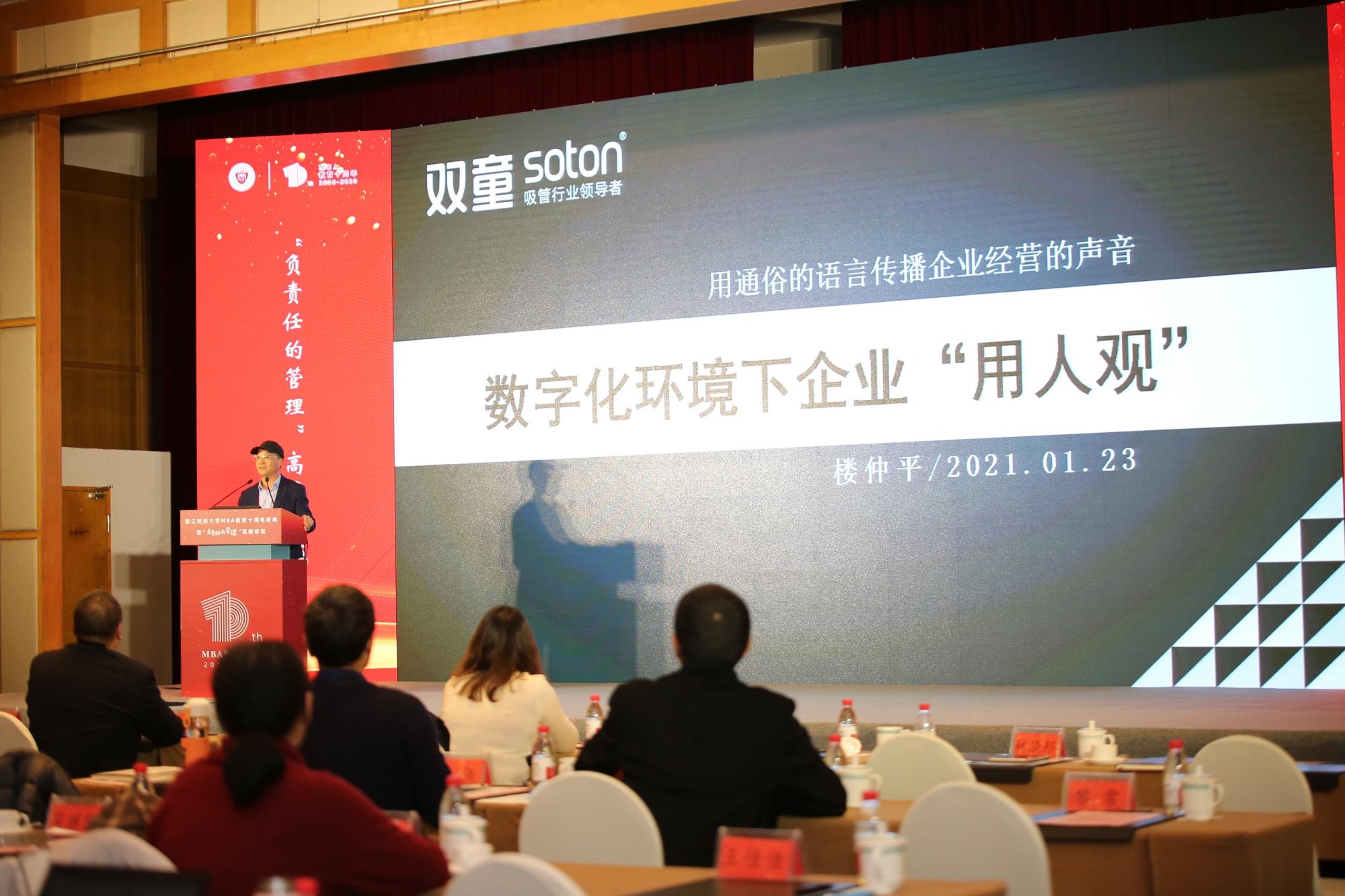 图为义乌市双童日用品有限公司董事长楼仲平《数字化环境下企业“用人观”》