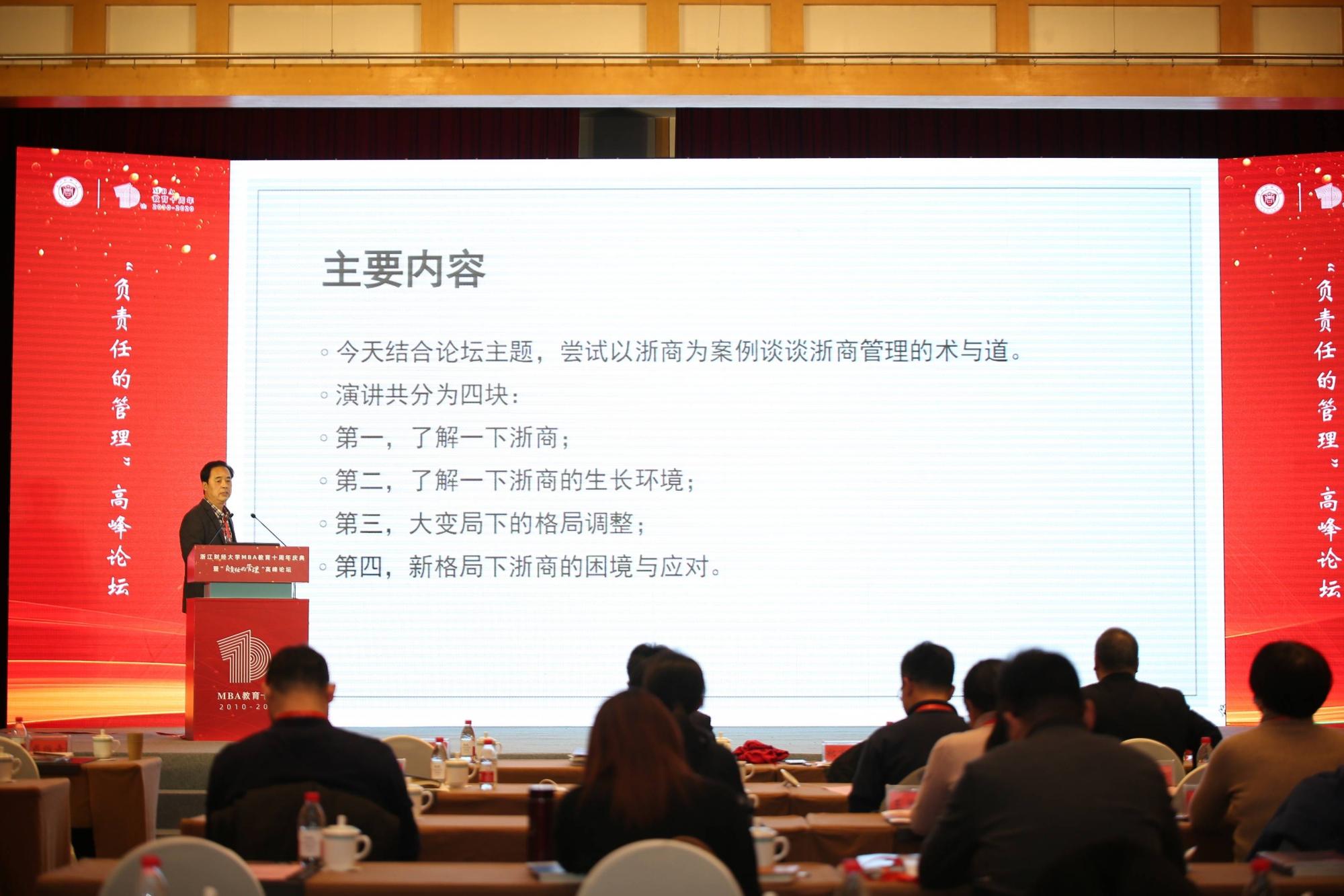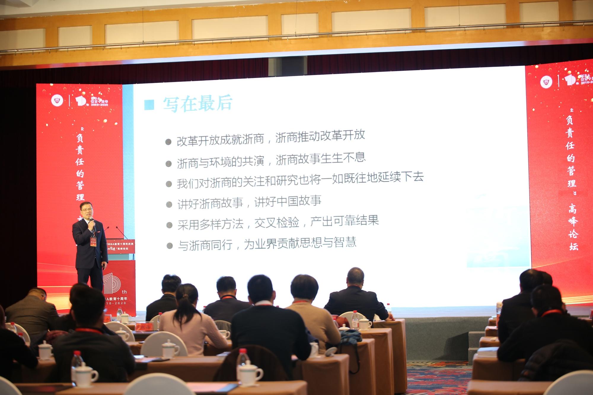 教授、中国管理案例共享中心主任苏敬勤、东北财经大学发展规划与学科建设处处长汪旭晖以及香港创业创新研究院院长曹仰锋分别以“负责任的管理教育:中国管理案例的实践”、“打造伟大的互联网平台企业”、“大变局时代高韧性企业五项修炼”等角度与与会者进行研究分享。原浙江省工商联副主席郑宪宏、义乌市双童日用品有限公司董事长楼仲平以“浙商管理的术与道”、“数字化环境下企业‘用人观’”等主题作交流。论坛开始前还举办了“负责任的浙商管理经验研究暨《新时代浙商管理经验》丛书”发布仪式。