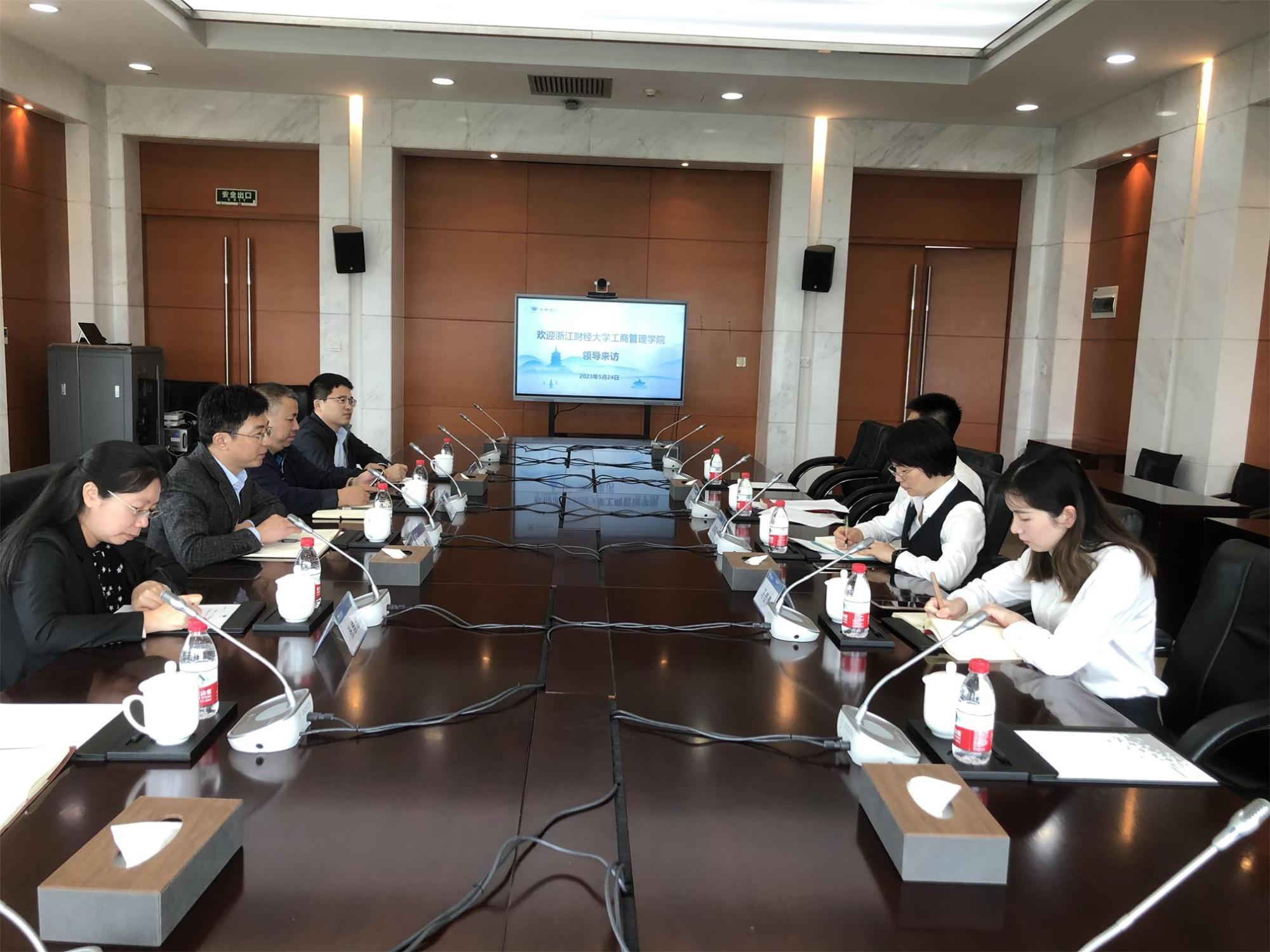 领导王建明院长、黄卫华书记、企业管理系主任包兴、MBA执行主任张维维、学办主任胡星平老师一行拜访了杭州银行总部,与杭州银行人力资源总经理赵映珍、人力招聘部负责人齐斯源和马佳倩经理就访企拓岗进行了深入的讨论。