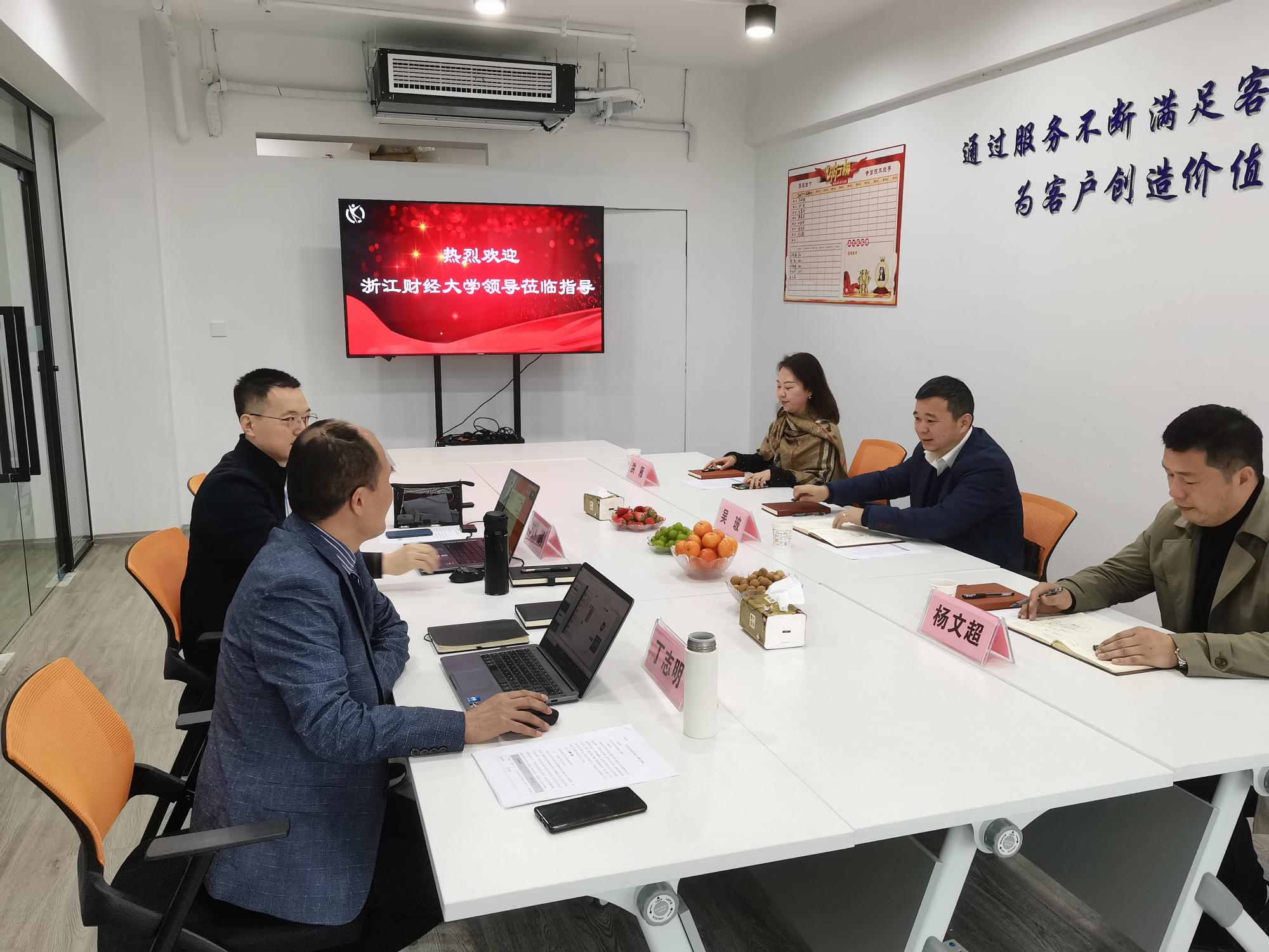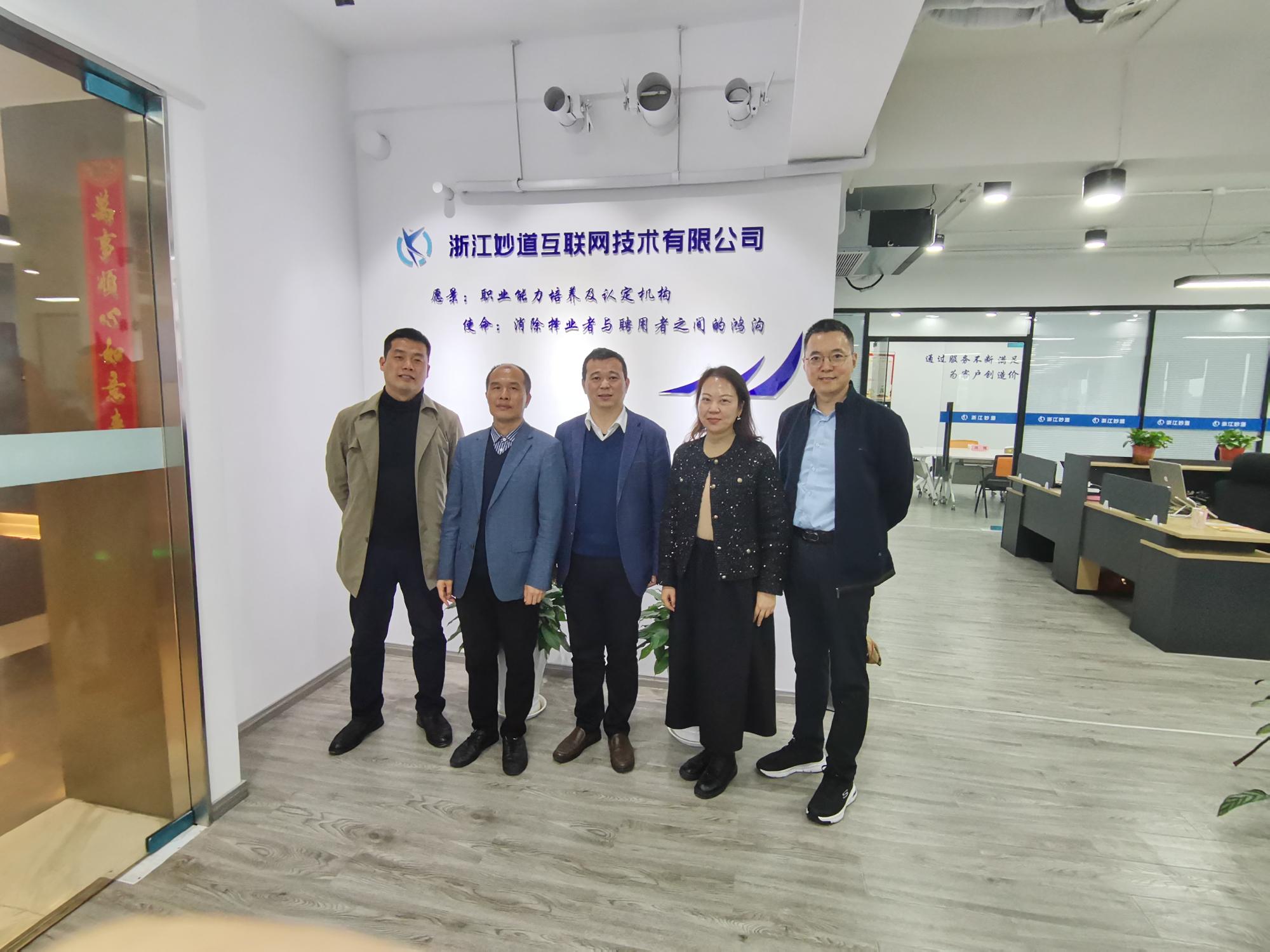 党委副书记吴玻,教工第三党支部书记洪雁,党委组织员、校友办主任杨文超,一行三人到浙江妙道互联网技术有限公司参观交流,受到北京鹏燊国际科技有限公司总经理刘鹏、浙江妙道互联网技术有限公司总经理丁志明等人的热烈欢迎。