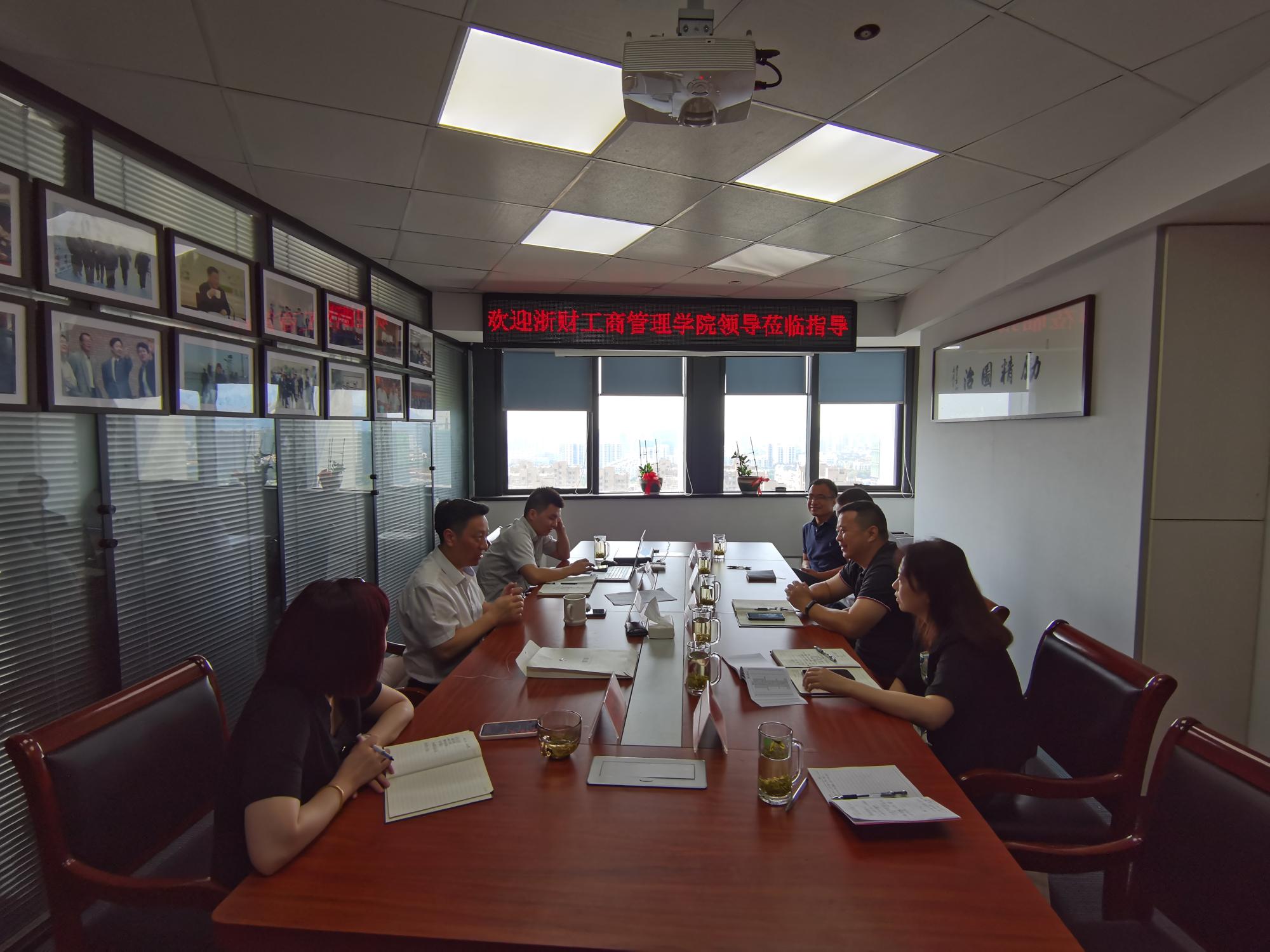 党委副书记吴玻、副院长张雷、教工第三党支部书记洪雁、中美项目负责人王建国、校友办主任杨文超一行五人到浙江省中经发政企合作服务中心考察交流,受到省中经发主任王前利、副主任刘丽红、助理王明的欢迎,双方就校企合作相关项目进行了交流洽谈。