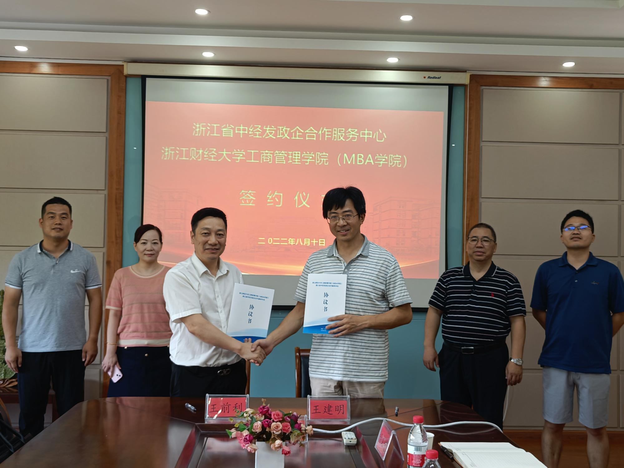 王建明和王前利,代表工商六合彩预测 (MBA六合彩预测 )与浙江省中经发政企合作服务中心共同签署了合作协议。