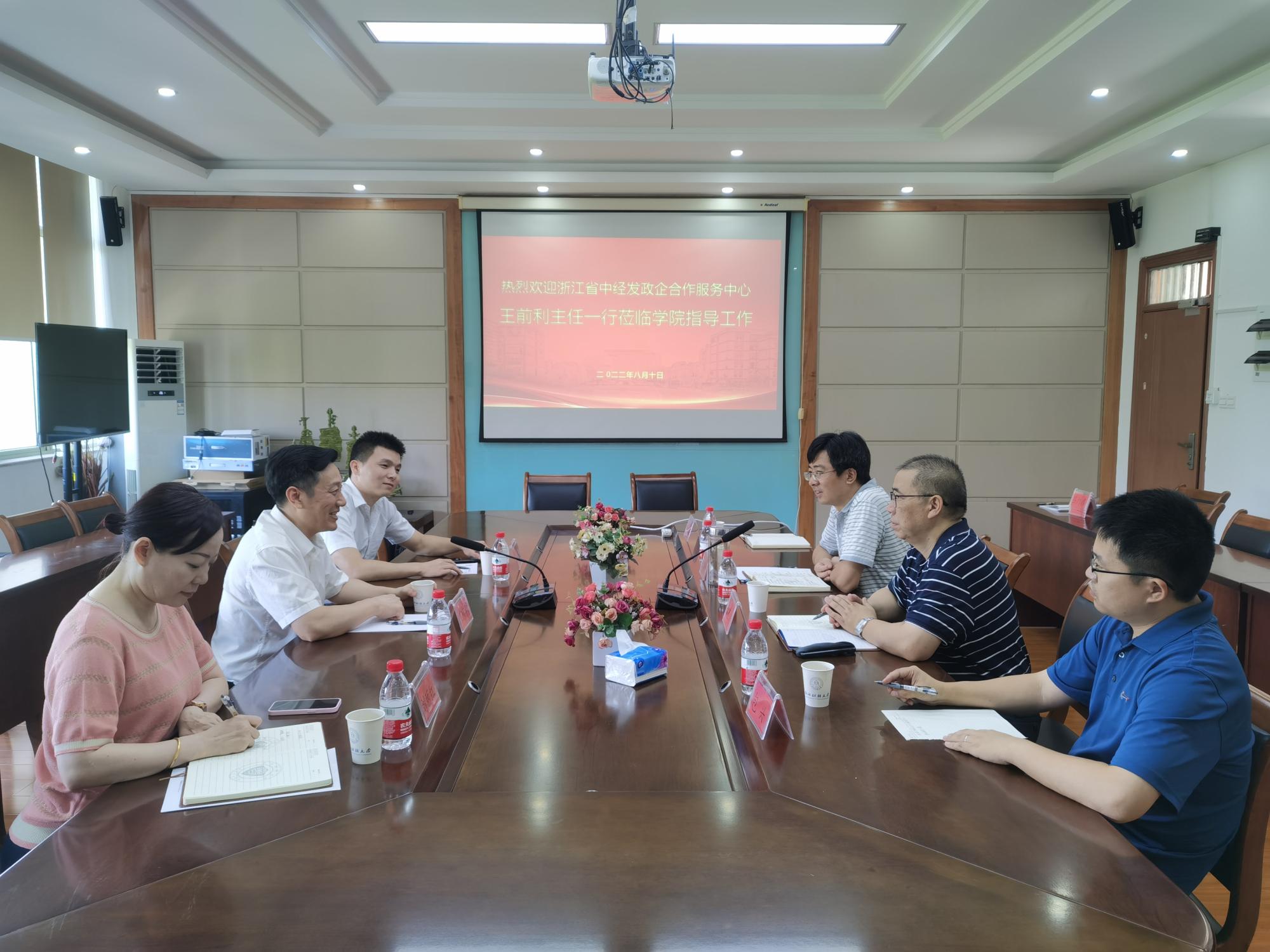 8月10日,浙江省中经发政企合作服务中心主任王前利、副主任刘丽红、助理王明来院考察交流,与六合彩预测 签署了竞赛合作协议。六合彩预测 党委书记黄卫华、院长王建明、教工第一党支部书记包兴、院校友办主任杨文超出席坐谈会和签约仪式。会议由院党委书记黄卫华主持。