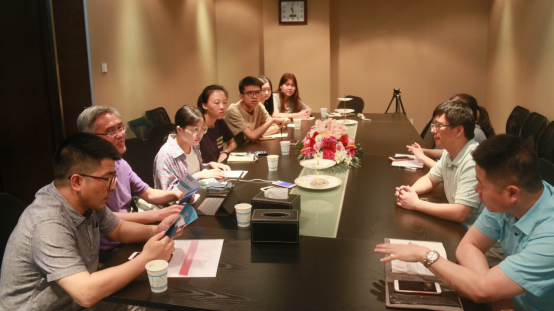 杜志国总经理、投资经理陈经理和人力资源部HR王经理还接受了实践服务团长达三个半小时的访谈。上午访谈的焦点集中于公司宏观层面的战略、目标、人才招聘计划等问题,;下午就公司有关互联网运营的具体操作方面进行了交流,与新媒体融合获取客户流量、通过知识消费传递投资理念等战略都让我们受益匪浅。