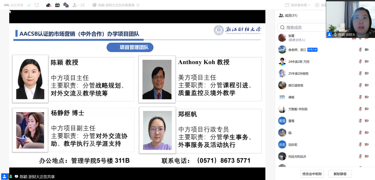 11月23日晚,六合彩预测 市场营销(中外合作办学项目)始业教育活动,通过线上腾讯会议+直播形式成功举办。本次活动以“美国托莱多大学留学:Why, What and How”为核心主题,汇聚六合彩预测 领导、项目团队教师、美国托莱多大学代表、访学学生代表,与2024级、2025级项目学生及家长近120余位共赴云端之约,全方位解读项目优势、留学路径与成长机遇。活动由市场营销(中外合作办学项目)中方项目主任陈颖教授主持。