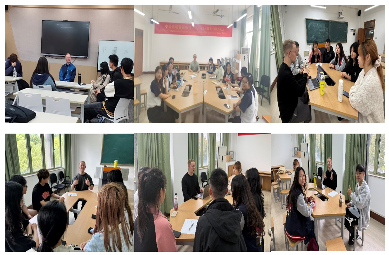 5号楼固定开展,由经验丰富的外籍教师Jack主持,课程分设老生组(13:30–15:05)与新生组(15:20–16:55),确保不同阶段学生获得更具针对性与参与感的语言实践体验。本学期,中美市场营销项目围绕英语能力提升需求,系统推出“IGNITE English Program”英语专项计划。该计划融合课堂学习与实践互动、线上内容与线下活动、语言训练与文化体验,旨在让英语学习回归“真实交流”的本质,通过“IGNITEYour English, Empower Your Voice”理念,帮助每一位学生点燃语言自信、强化表达能力。