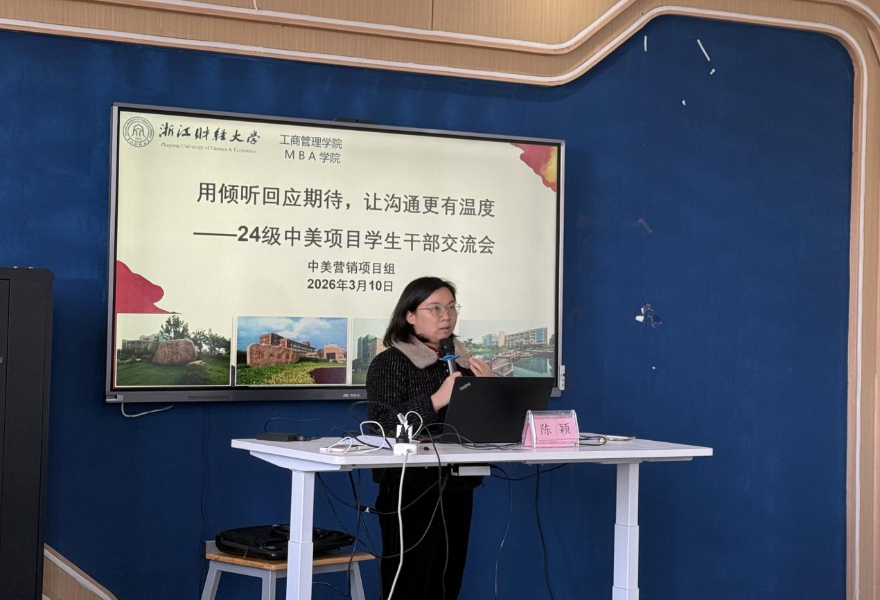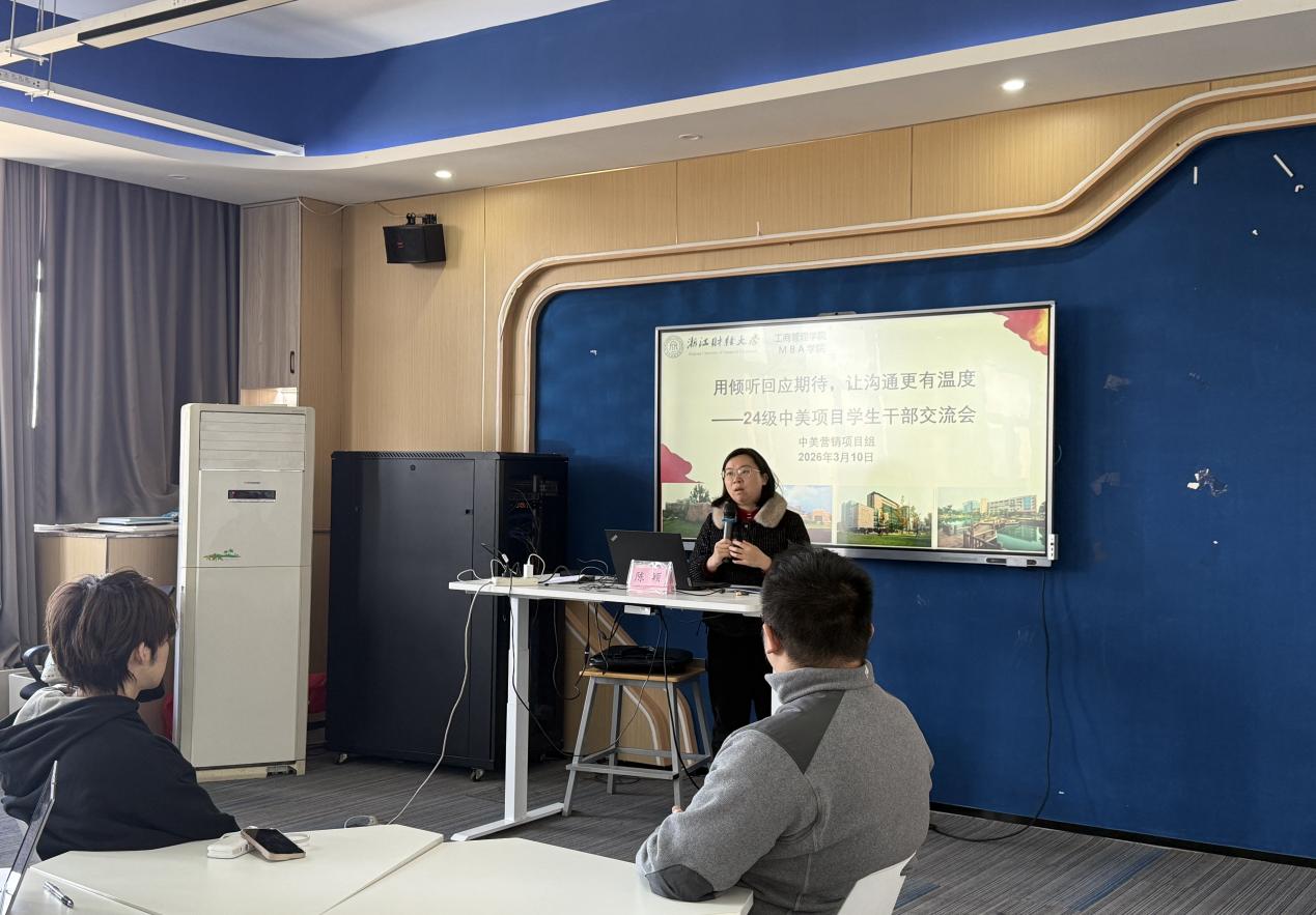 结合课程安排,陈颖老师介绍了项目课程体系及UT教师授课情况。她表示,同学们在浙财学习阶段即可修读部分UT课程,希望大家珍惜项目提供的国际化教学资源,充分利用外教课程提升专业能力与国际视野。