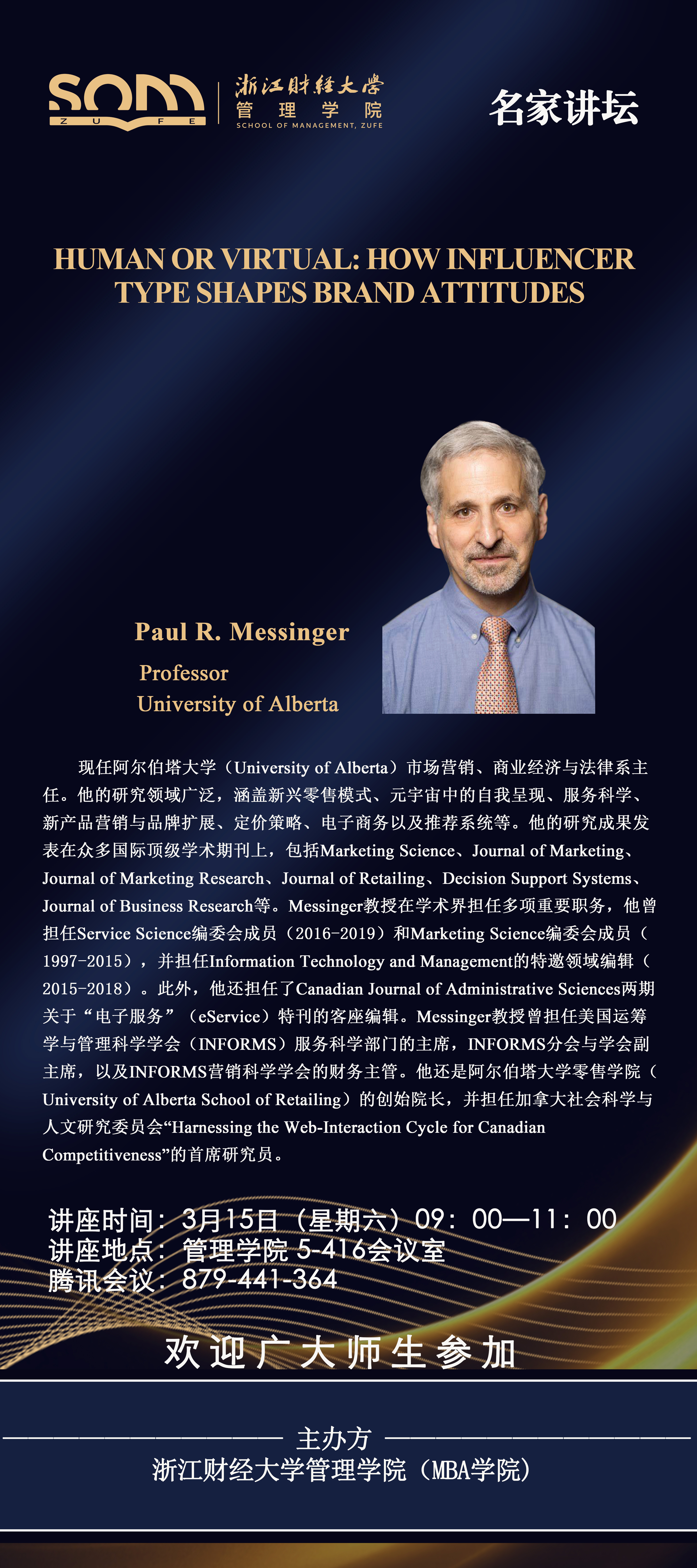 六合彩预测 新财经战略系列学术活动2025年第10期【名家讲坛】Paul R. Messinger:Human or virtual: How influencer type shapes brand attitudes