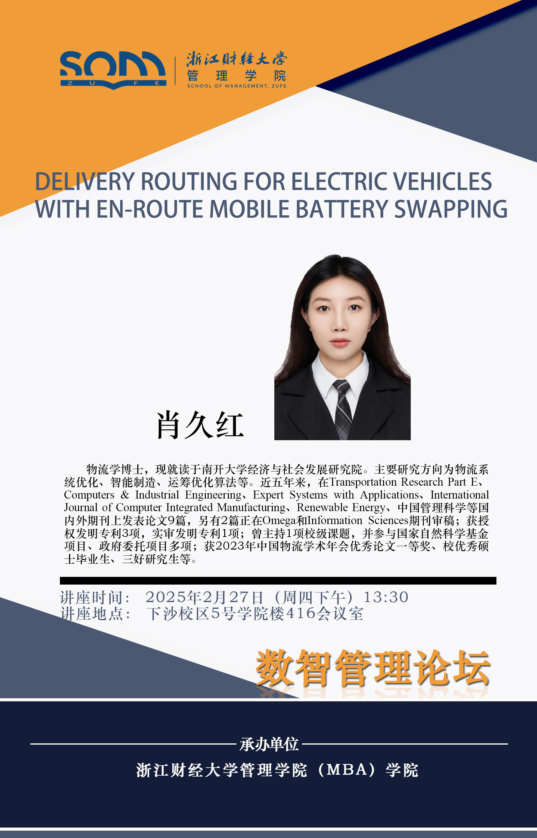 讲座题目:Delivery routing for electric vehicles with en-route mobile battery swapping