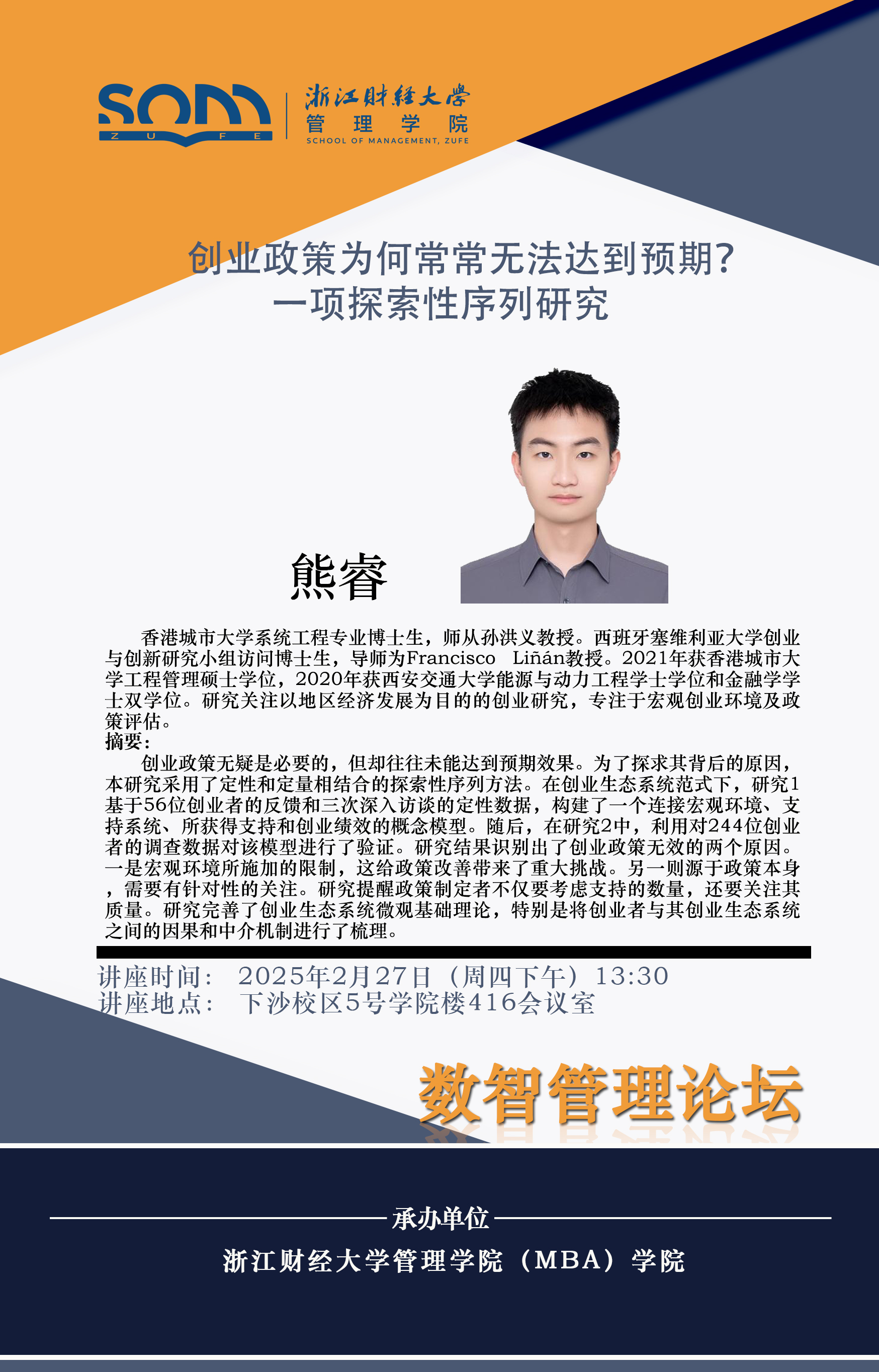 六合彩预测 新财经战略系列学术活动2025年第3期【学术报告】熊睿:创业政策为何常常无法达到预期?一项探索性序列研究