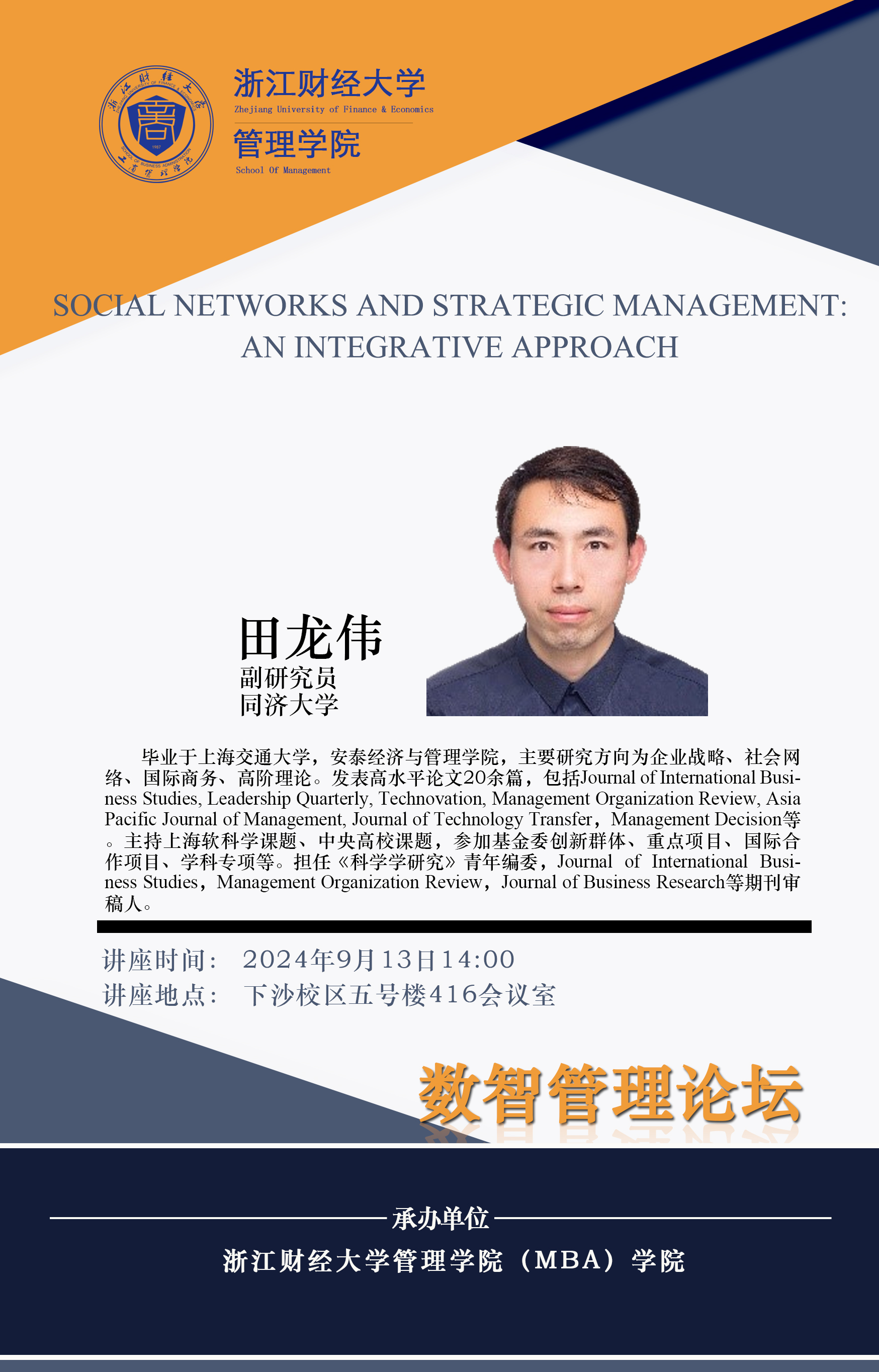 【讲座预告】田龙伟:SOCIAL NETWORKS AND STRATEGIC MANAGEMENT: AN INTEGRATIVE APPROACH