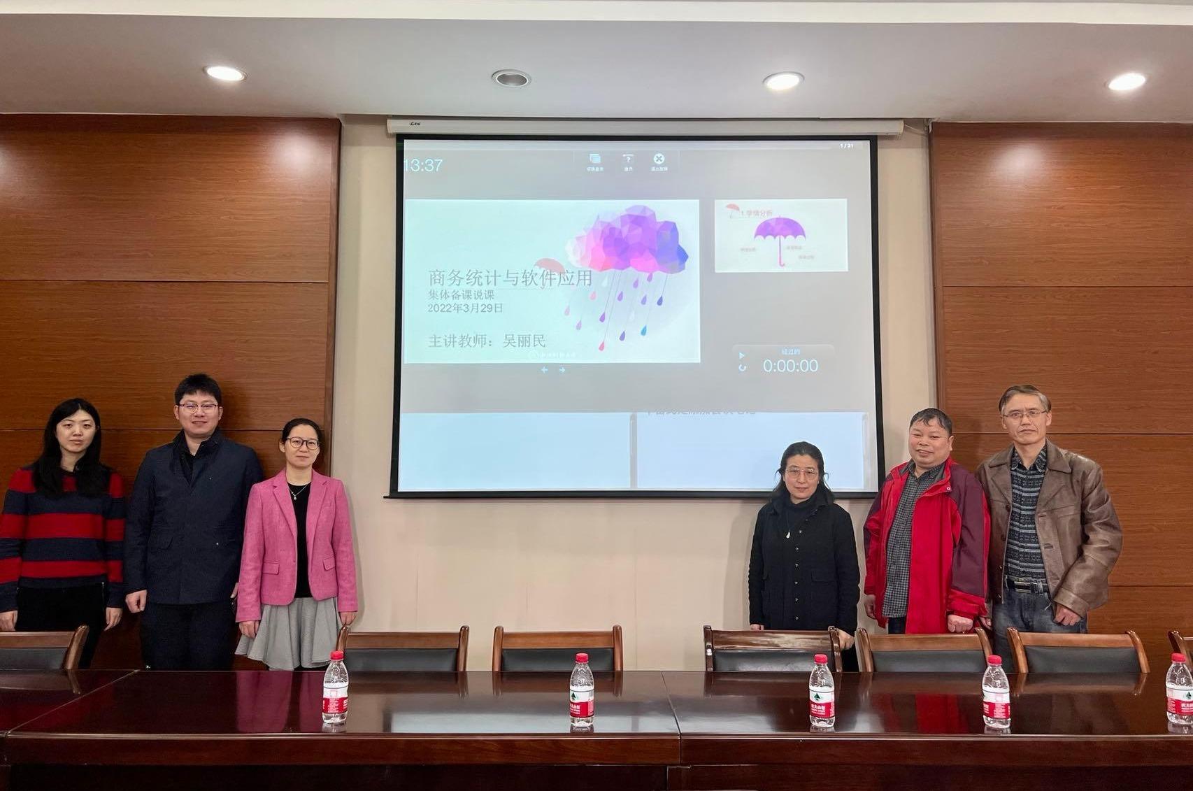 218,工商管理系《商务统计与软件应用》课程组开展首次集体备课活动。本次活动旨在促进任课老师之间的交流,分析教学现状,分享教学经验,讨论课程设计,改进备课过程的不足。集体备课活动由系主任吴丽民主持,彭金荣、倪文斌、赵昶、罗兴武、戚筱雯、赵雨菡,院督导林与川老师,教学办赵红老师参加了本次活动。