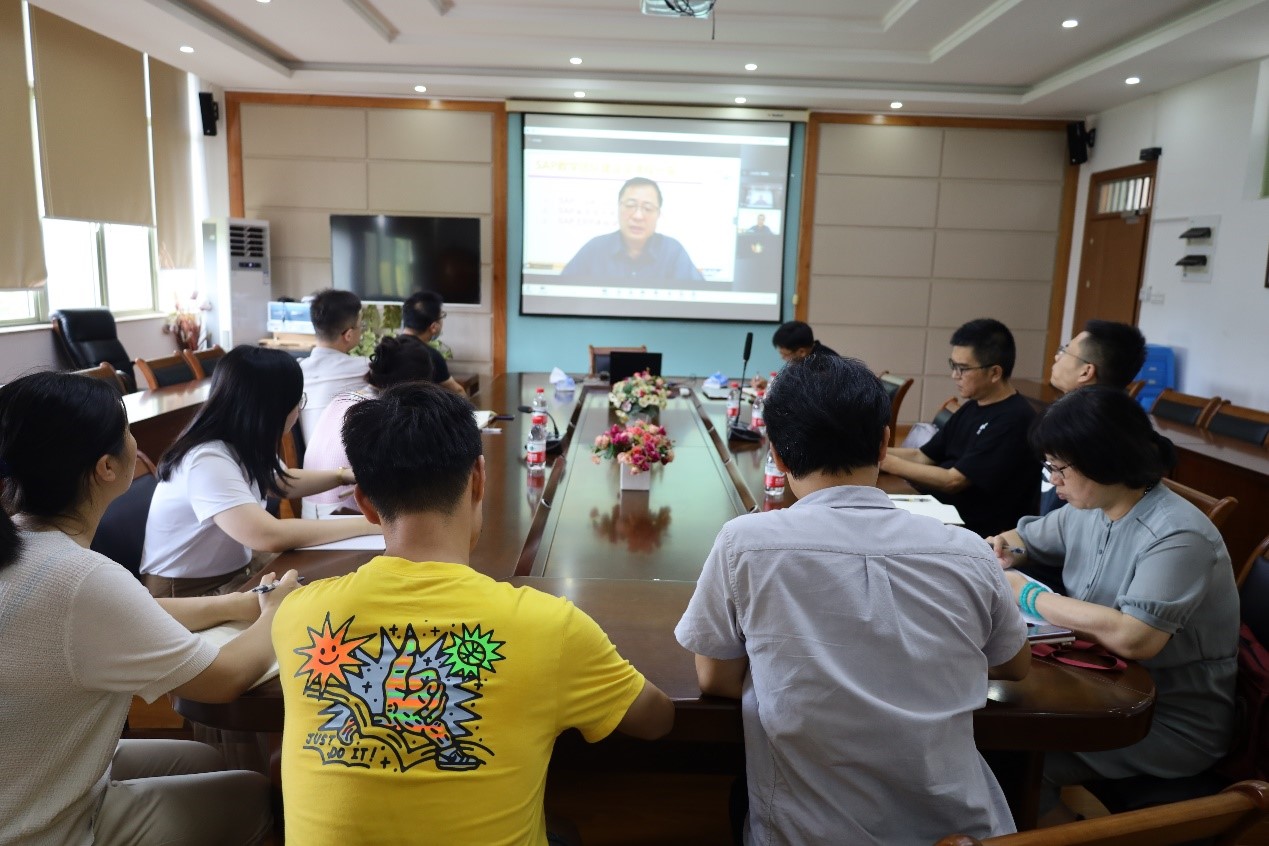 在互动环节,郭教授与在线老师围绕“SAP课程体系建设”、“团队建设”、“SAP的培训”等问题展开了交流讨论。讲座在致谢中圆满结束。