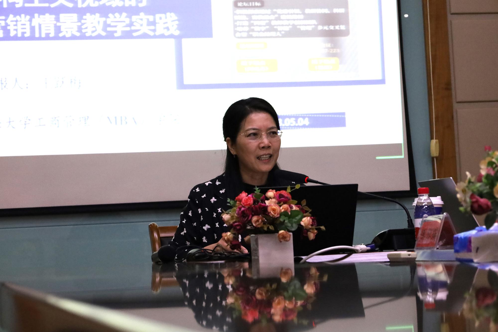 王跃梅教授阐述了《建构主义视域的服务营销情景教学实践》,以“兴趣激发—实践认知—理论激活—身临其境—学以致用--寓教于德”为主线,为学生设计沉浸式的教学体验和实践建构环境。