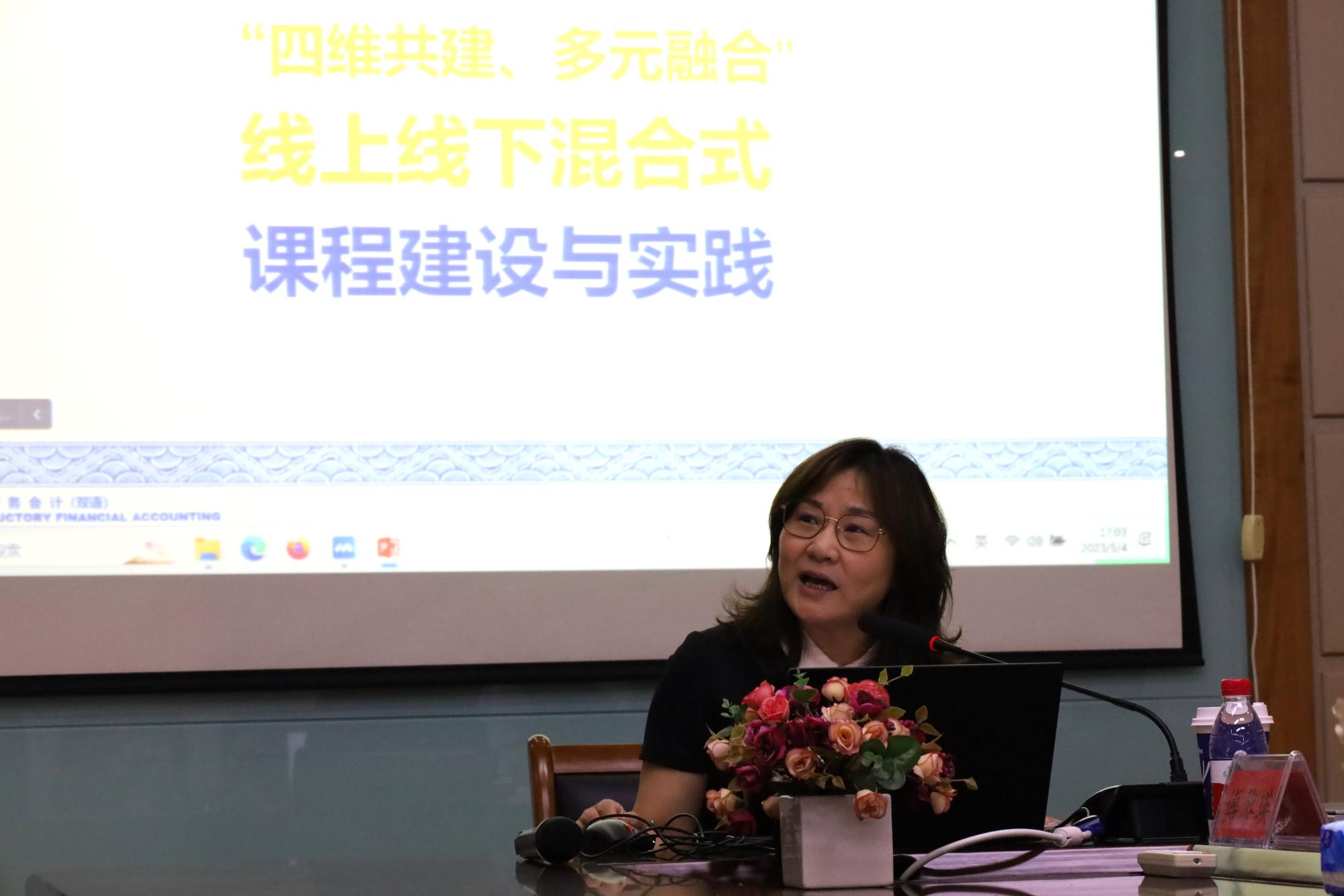 傅黎瑛教授分享了“四维共建、多合一体”的《基础财务会计(双语)教学创新》,落地了一套基于BOPS的行之有效的小班化双语教学创新举措,打造了一个善于探索、教学相长的师师、生生和生师三维学习共同体。