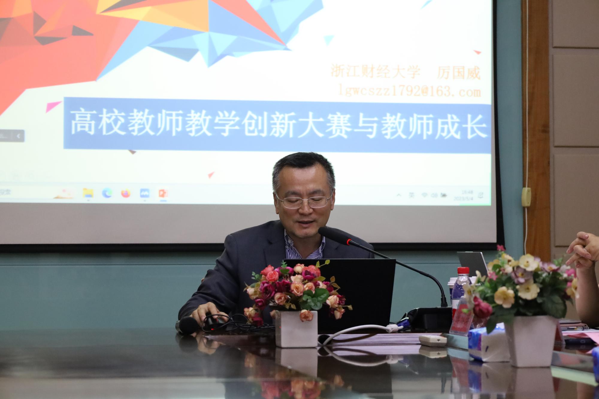 厉国威教授围绕《高校教师教学创新大赛和教师成长》作了重要报告。他表示,以教师教学能力竞赛促进教学,带动了更多教师积极钻研教学,从课堂中来,回到课堂中去,将比赛成果“辐射”到课堂教学,进一步推动课堂教学质量提高。