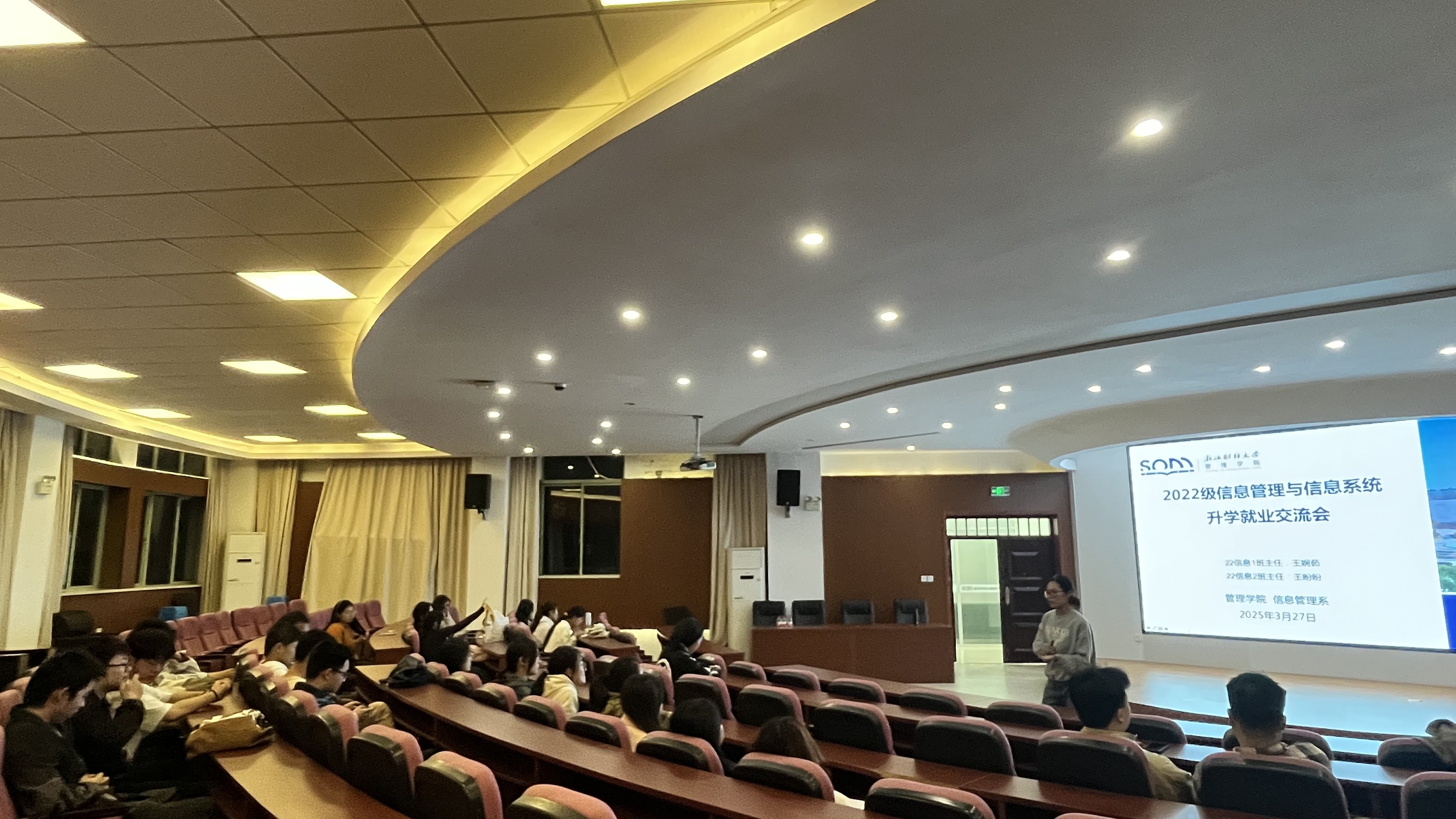 本次会上,信管系王婉茹和王盼盼老师首先针对国内考研、海外高校申请、中外合办高校申请等不同升学方式及相应时间节点进行了简要介绍。其次,围绕信管升学的专业方向及对应初试考试科目,包括管理科学与工程学硕、图书情报专硕、信息资源管理学硕、计算机类学硕、电子信息专硕等展开了介绍,并和同学们强调要围绕自身专业课学习优势选择报考专业,同时结合目标院校所在地理位置、拟报考专业招生名额、报录比等信息综合考虑确定拟报考院校和专业。最后,针对拟就业的学生,提醒大家多关注专业相关岗位招聘中的各方面能力要求,利用课余时间多提升相应能力;同时鼓励大家利用好大三暑期时间,走出去实习,积累实习经验,为后续求职应聘打下良好的基础。