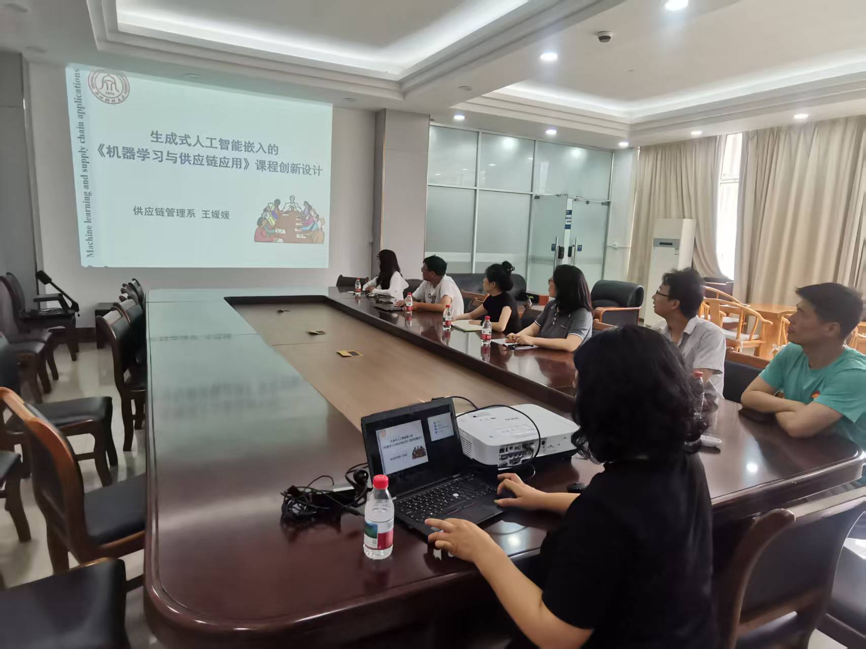 218会议室顺利召开《生成式AI嵌入课程教学模式创新设计》教学研讨会。本次会议以《机器学习与供应链应用》课程实践为例,深入探讨生成式AI技术与供应链管理专业课程教学的融合路径,以提升学生的创新思维与实践能力。供应链管理系主任李晓超、课程负责人王媛媛及全体课程组成员参会,共同探讨教学模式创新方案。