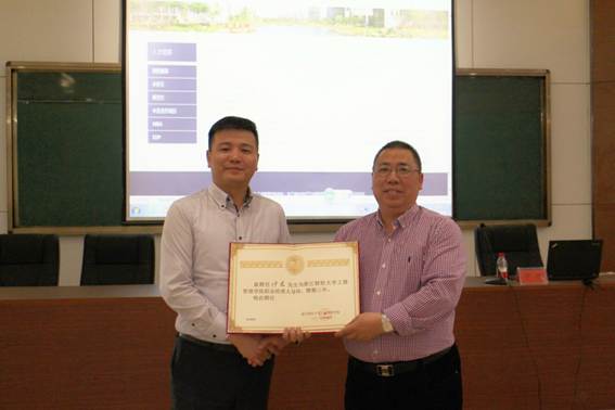黄卫华书记、谢敏副书记郑重地向伊君总裁颁发“职业经理人导师”和“市场营销专业企业指导委员会委员”双份聘书,同时,市场营销系项丽瑶博士作为校方联系人将进一步推进校企合作,共建、共创、共享名天贝曾实践教育基地。本次讲座活动由市场营销系主任陈颖副教授主持。