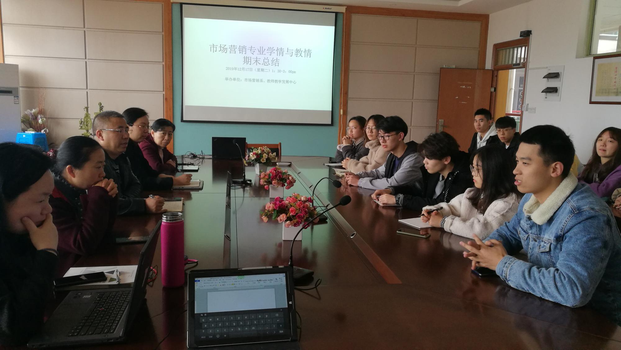 410会议室召开了一场“营销专业学情与教学期末总结”为主题的教学研讨会,会议主要围绕18、19级市场营销班级学情交流、教学成果申报情况、教师目标责任完成及系年度工作回顾等展开讨论和总结,黄卫华书记及市场营销系全体老师参加了本次研讨会,营销系主任陈颖主持会议。
