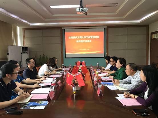 沈渊教授、工商系主任吴丽民、人力系主任旷开源、中美合作项目负责人王建国、人力系教师张维维等人参加了交流。