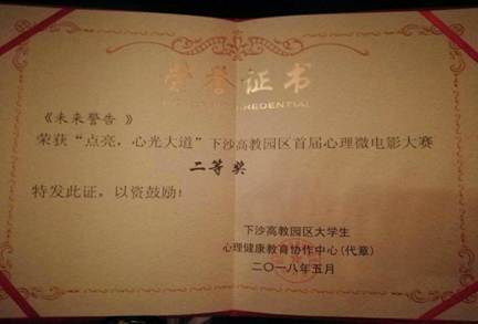 “获得本次‘点亮,心光大道’下沙高教园区心理微电影大赛二等奖的有,来自六合彩预测