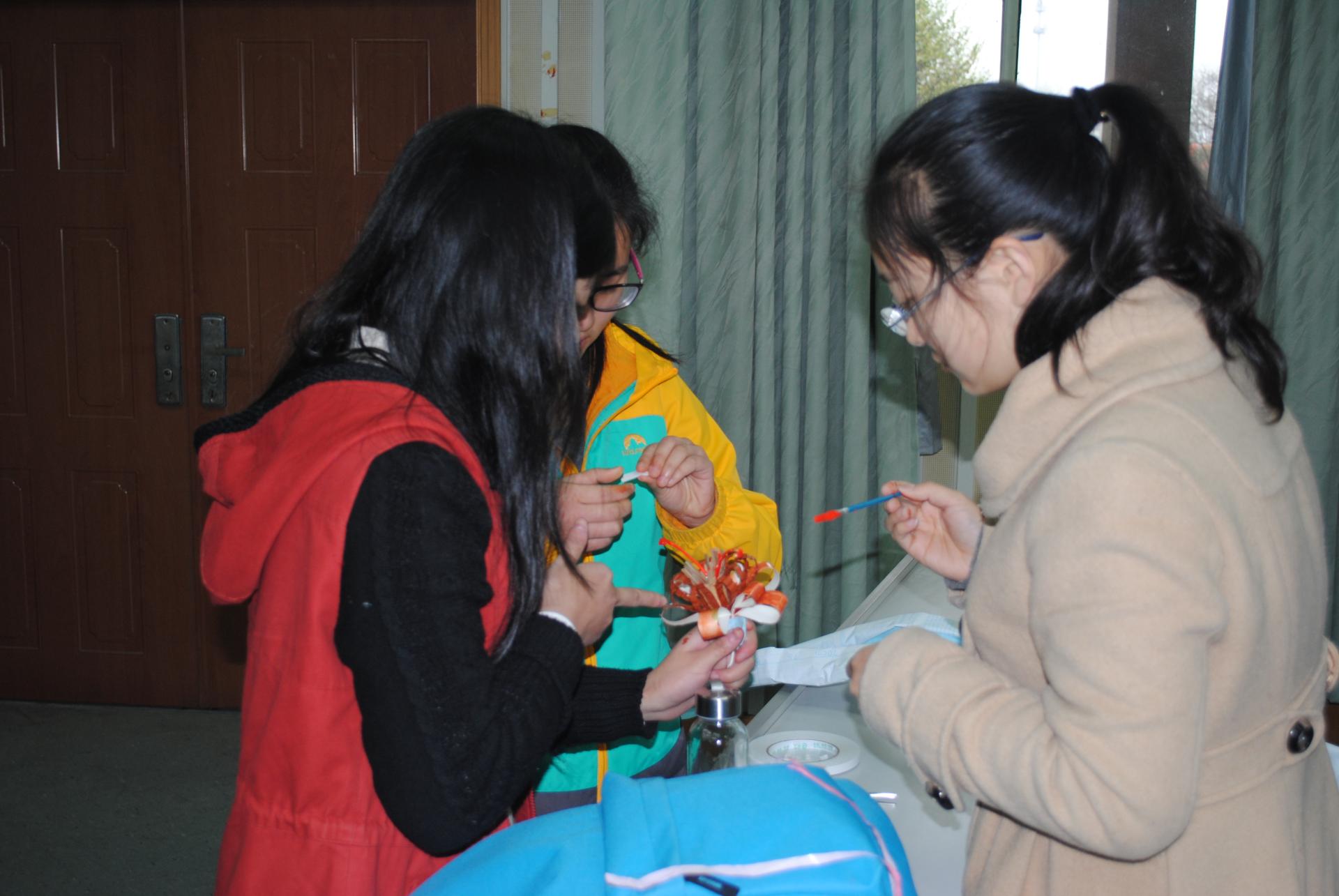 楼115教室举行“地球一小时”环保创意大赛活动——用学生党员之家提供或参赛者自带废品制作手工作品。比赛中选手们是将废品变成了一个个别出心裁的装饰品,小小的装饰品中寄托着让世界上更多的人感受到新鲜的空气,没有废弃物污染的美丽的世界的愿望。