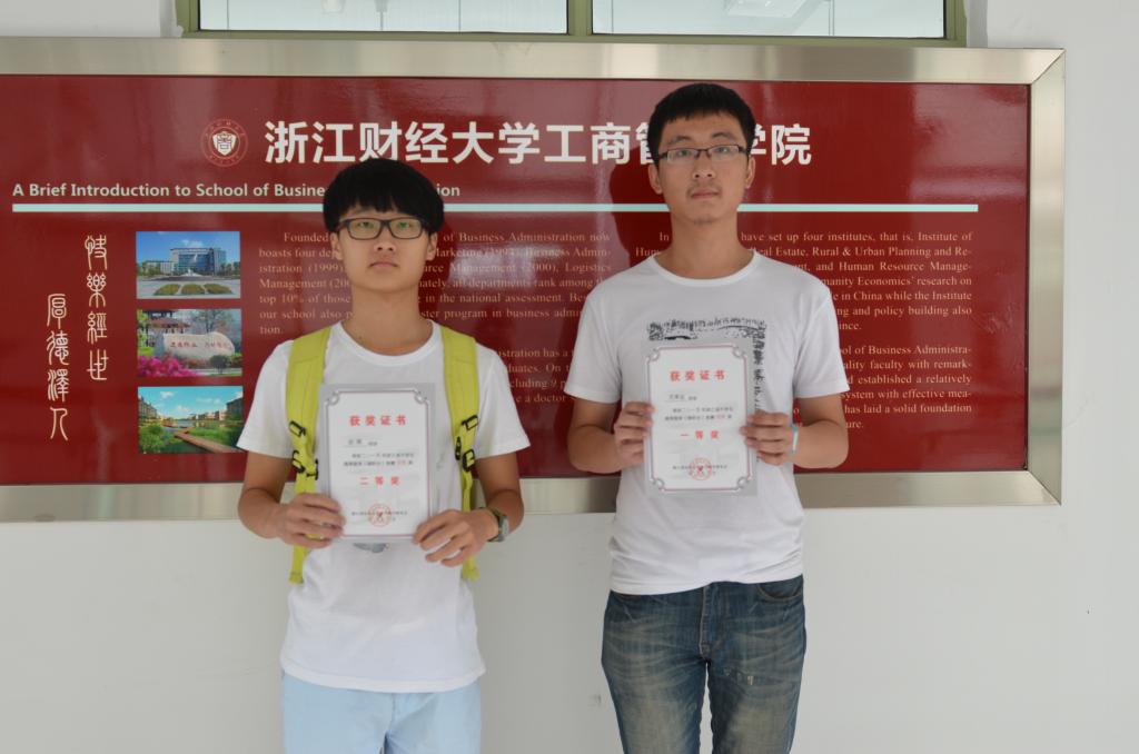 六合彩预测 12工商2班尤择业,14工商2应晟两位同学在2015年浙江省大学生高等数学(微积分)竞赛经管类比赛中分别荣获一二等奖的佳绩,特此祝贺!