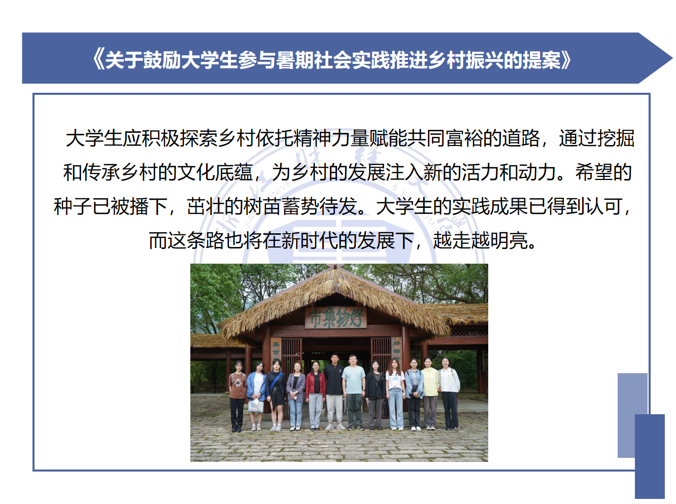 新时代青年大学生,希望在青春韶华之际,坚定自己的理想信念,尽自己的担当做一个对国家和社会有用的人。一些关系民生的政策和法律问题需要进一步补充与完善,生活方方面面还存在着不足。大学生模拟政协活动,着手人民群众普遍关心的问题,开展调查研究,协商、讨论形成政协提案,从而为人民群众解决实际中的困难,让我们的生活越来越幸福。