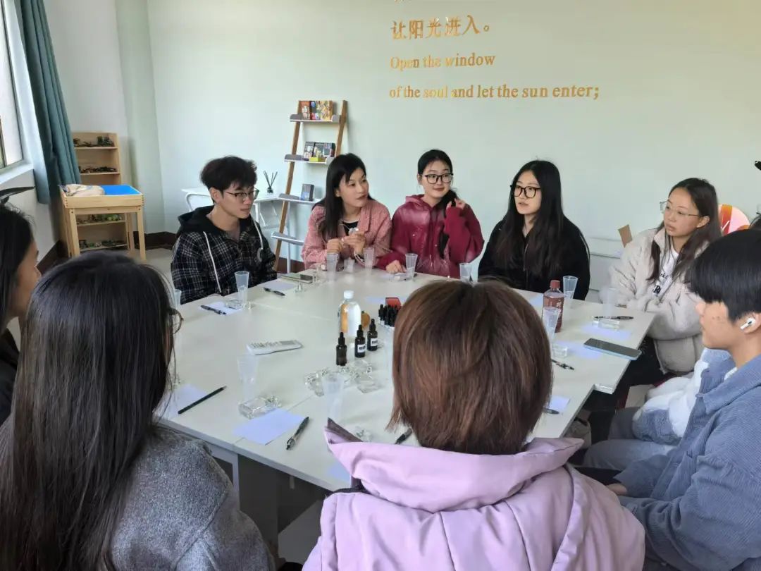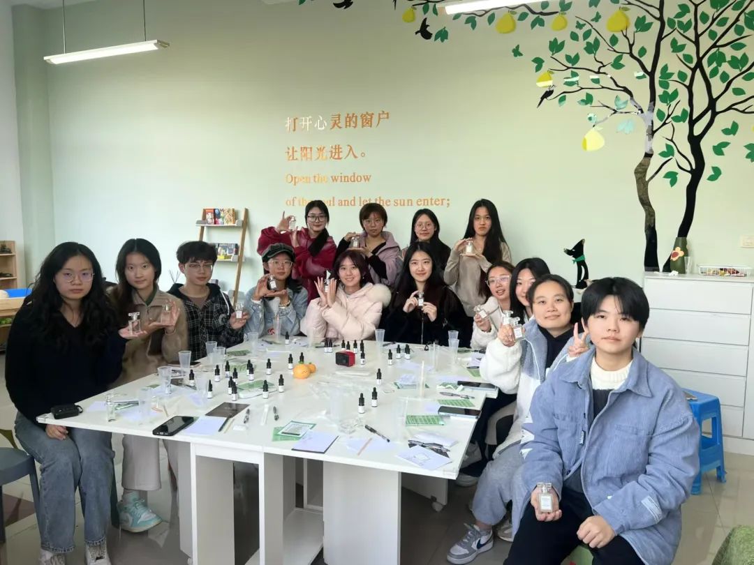 党委副书记陈小芳、心理辅导员周依凡、心理部干事以及部分同学参加了此次活动。在这场活动中,同学们通过闻香体验、正念冥想、制作香水等一系列过程,舒缓情绪,放松身心,以最自然的疗愈方式,缓解学习和生活带来的焦虑和悲伤,重新找回内心的平静与平衡。