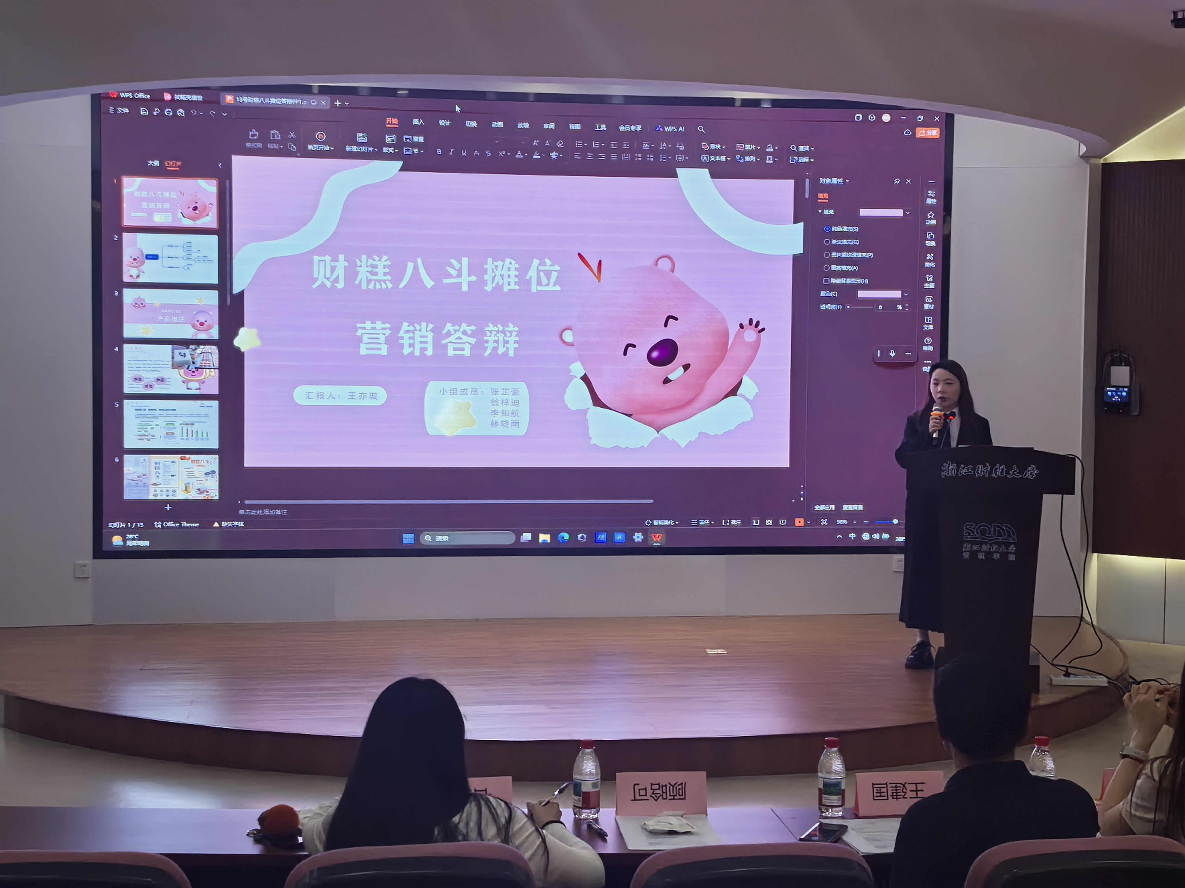经现场激烈角逐与多维度综合评审,“来自春天的源麦甜”团队凭借对春日消费场景的精准洞察与创意营销策划,在答辩环节中脱颖而出,斩获一等奖;“优芋是一种天赋”“石榴籽”团队分别以差异化产品定位和文化赋能的营销模式,并列夺得二等奖;“西子浮雪”“财糕八斗”“喵居”团队通过融合地域特色、健康生活与宠物经济的创新思路,获得了三等奖的成绩。
