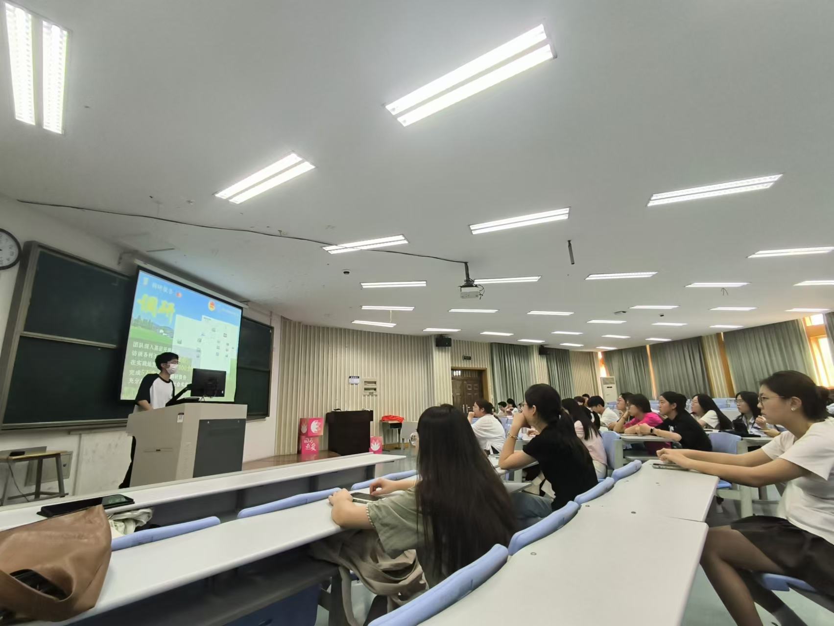 接着,由2024年校十佳社会实践团队队长邹睿康学长为大家分享实践活动中的宝贵经验。他从实践主题选择、团队分工、调研手段以及项目延伸这四个最重要的因素展开,分享了前期准备、项目特色挖掘、选题推荐、项目书的撰写等内容,以及自身实践经历和收获,让同学们对暑期社会实践活动有更清晰的认识,从而更好地制定团队的规划。