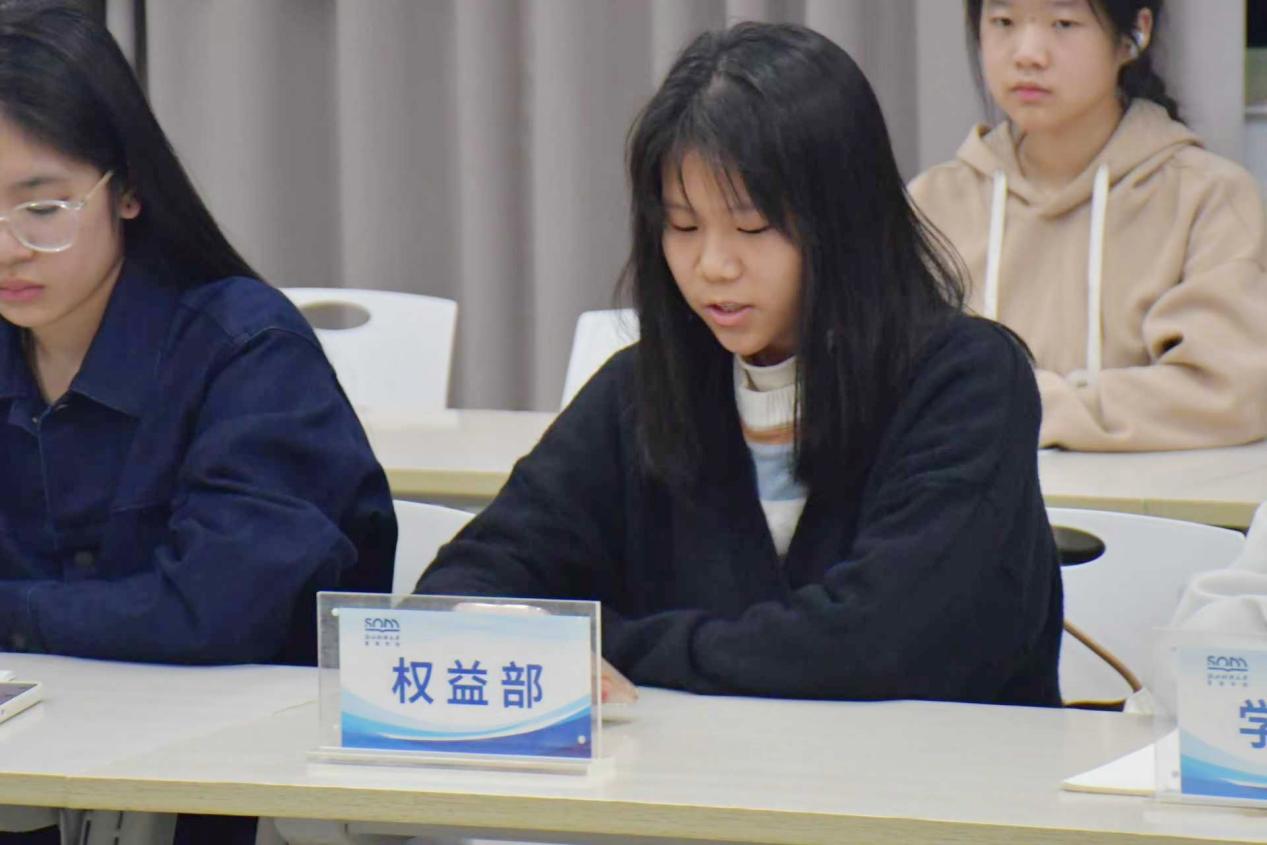 随后,各部门负责人进行了简单的自我介绍,汇报了近期工作,提出了工作中发现的问题和对于未来工作的规划。顾晗可老师总结了开学以来各部门的工作情况,对各部门的近期表现提出表扬,并对各部门进一步加强宣传工作、促进各部门联动作用提出了详细的建议。顾晗可老师重点强调了团学组织的纪律问题,各部门应当严格要求自己,远离“不能踩”的三条红线。