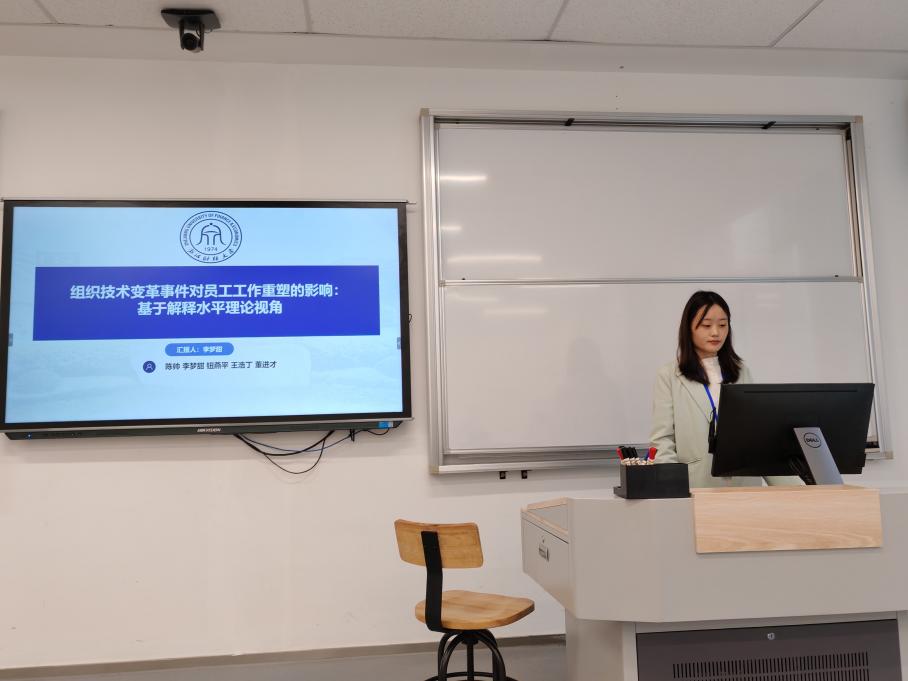 2024级硕士研究生李梦甜与导师陈帅副教授合作的论文《组织技术变革事件对员工工作重塑的影响:基于解释水平理论视角》受邀汇报。该论文基于事件本身的多层次动态视角,从“情境-知觉-行为”的研究脉络出发,结合事件系统理论与解释水平理论,探讨技术引入事件属性如何触发员工趋近型和回避型工作重塑行为。基于两项实验研究,研究发现技术引入事件的时间距离会对两类不同的工作重塑产生影响,并且解释水平和事件的强度也会在其中发挥作用。