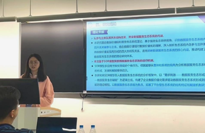 2023级硕士研究生程江杭与导师周丹副教授合作的论文《数据服务生态系统的结构和运行机制研究--以天道金科为例》受邀汇报。该论文从数据价值链理论和服务生态系统视角出发,识别数据服务生态系统的结构特征和运行机制。进而,以天道金科数据服务生态系统为例,佐证了数据服务生态系统运行机制的理论逻辑,为深入推进数据服务生态系统研究和实现企业数据价值化提供借鉴。