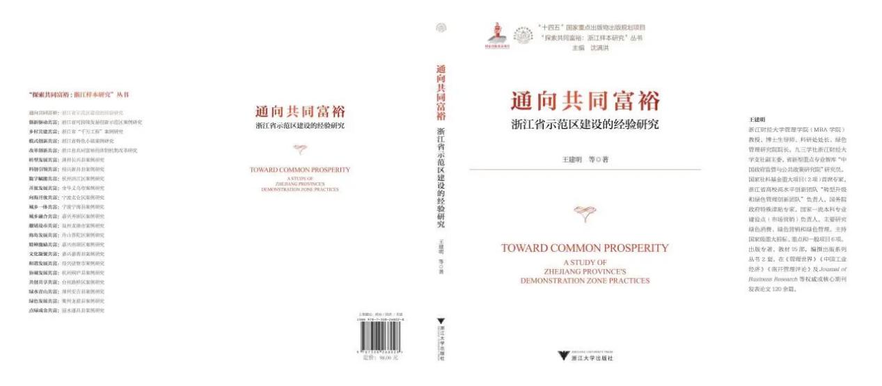 教授、绿色管理研究院院长、博士生导师王建明领衔撰写的著作《通向共同富裕:浙江省示范区建设的经验研究》正式由浙江大学出版社出版。本书是浙江省文化研究工程重点课题“共同富裕的探索与实践——浙江经验总论”的最终研究成果,也是省“八八战略”研究院的重要研究成果。