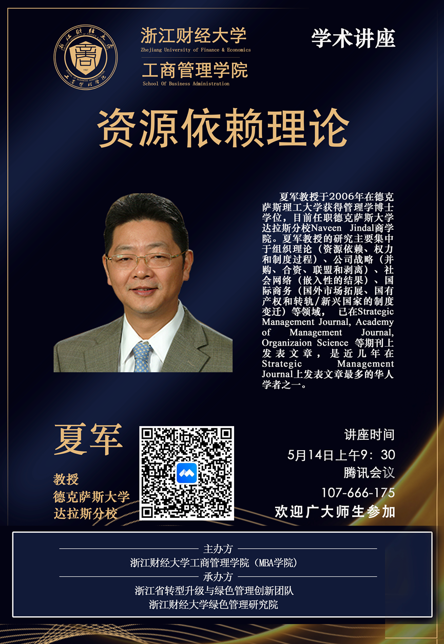 【讲座预告】夏军教授:资源依赖理论
