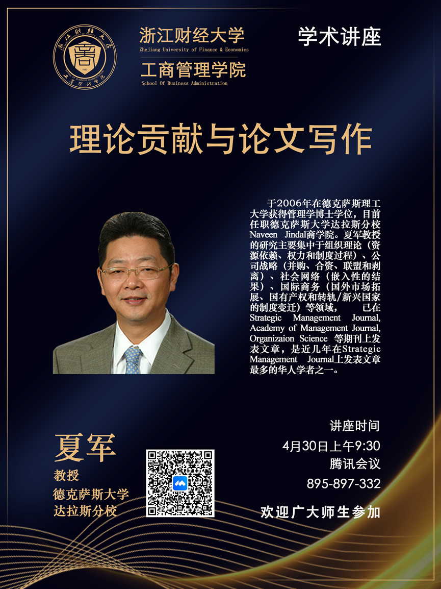 【讲座预告】夏军教授:理论贡献与论文写作