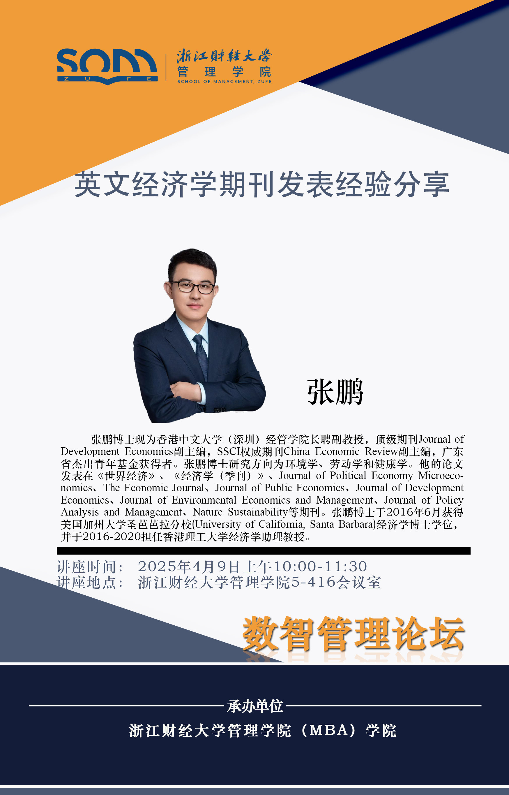 六合彩预测 新财经战略系列学术活动2025年第11期【学术报告】张鹏:英文经济学期刊发表经验分享